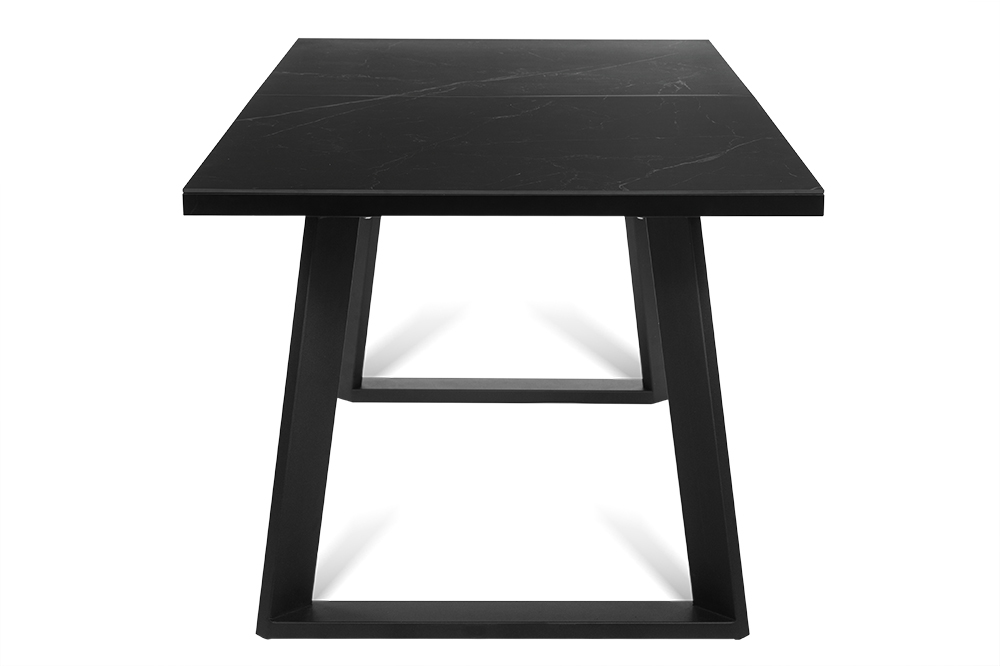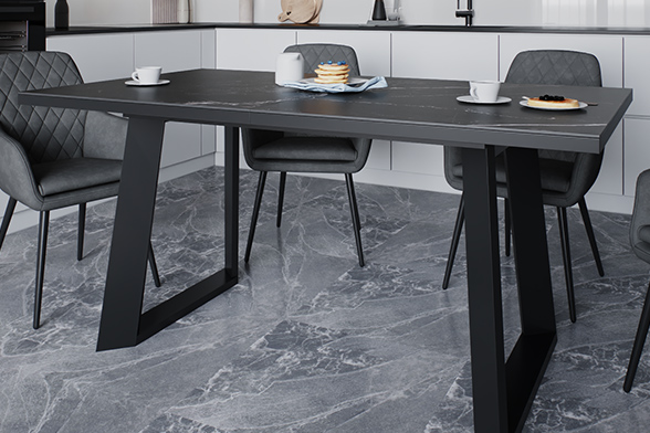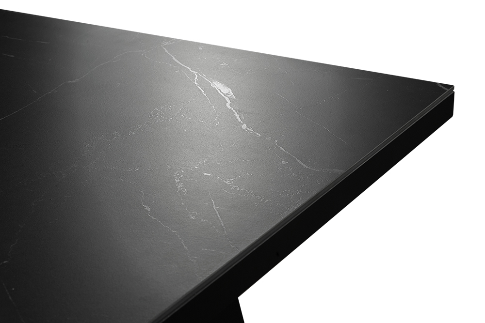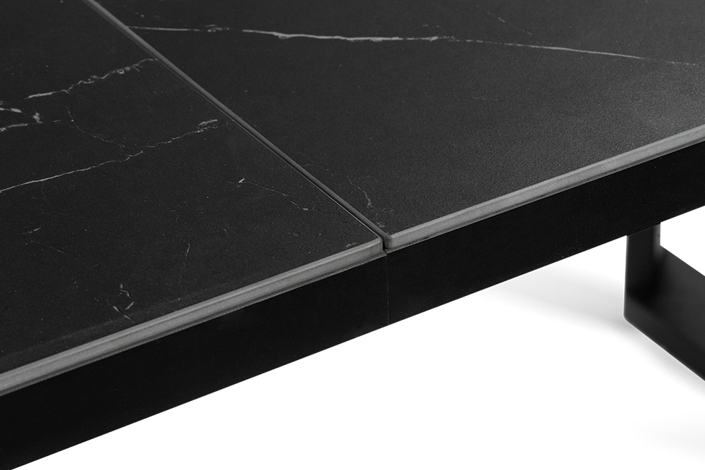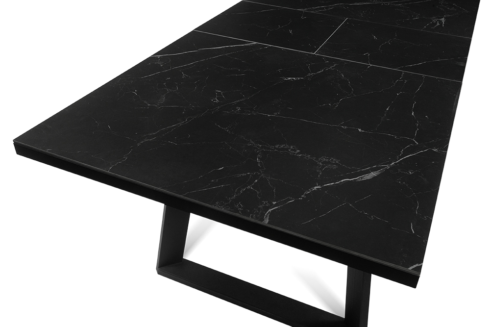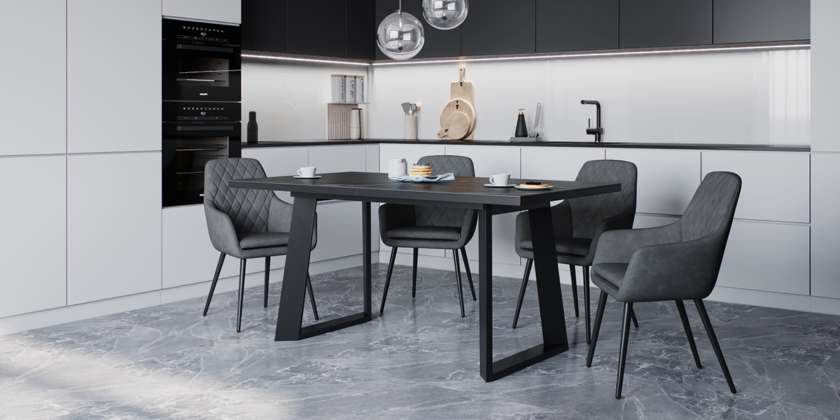 Обеденный стол BERNER 160 NERO CER — современная элегантность и надежность. Его лаконичный дизайн с длиной 160 см идеально подходит для ежедневного использования, а благодаря центральной вставке стол легко трансформируется, увеличиваясь на 40 см для приема гостей или семейных торжеств. Столешница из черной керамики — сердце этой модели. Керамика исключительно практична: она устойчива к царапинам, горячим поверхностям и пятнам, сохраняя безупречный вид даже после активной эксплуатации. Дополнительную защиту обеспечивает кромка из ПВХ в тон столешницы: она предотвращает деформацию полотна при случайном попадании влаги, продлевая срок службы стола. Металлические ножки в форме трапеции черного цвета придают конструкции монолитную устойчивость и визуальную легкость. Их геометричный дизайн дополняет современную эстетику, гармонируя с интерьерами в стиле минимализм, лофт или индастриал.
