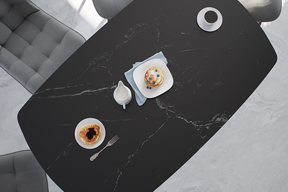 Керамика — эстетичный и благородный натуральный материал, представленный в разнообразных оттенках и фактурах. Выполненные из него столешницы служат десятилетиями: за счет плотной структуры и высокой прочности им не страшны царапины, постоянный прямой контакт с влагой и перепады температуры.