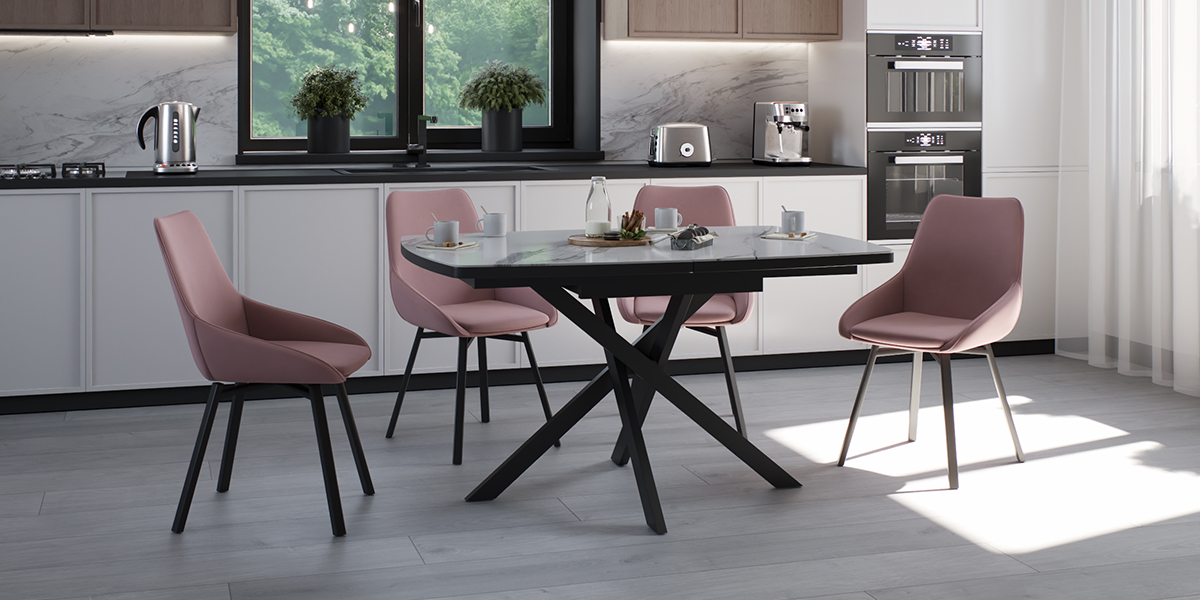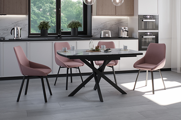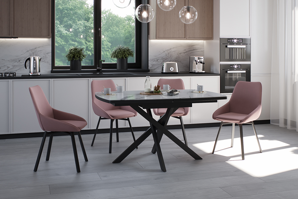 Стол DALLAS LIGHT 140 MARBLE CER – идеальное решение для тех, кто ценит стиль, функциональность и высокое качество. Прямоугольная форма столешницы размером 140 см легко расширяется на 40 см, обеспечивая дополнительное пространство для уютных обедов с семьей и друзьями. Особенностью этого стола является его белая глянцевая столешница из керамики с рисунком под мрамор. Керамическая поверхность не только придает столу элегантный внешний вид, но устойчива к царапинам и перепаду температур, что делает этот стол идеальным выбором для повседневного использования. Дизайнерские утонченные ножки стола добавляют шарма и характера, подчеркивая индивидуальность вашего интерьера.