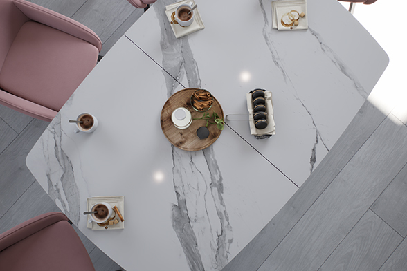 Керамика — эстетичный и благородный натуральный материал, представленный в разнообразных оттенках и фактурах. Выполненные из него столешницы служат десятилетиями: за счет плотной структуры и высокой прочности им не страшны царапины, постоянный прямой контакт с влагой и перепады температуры.