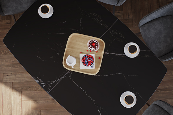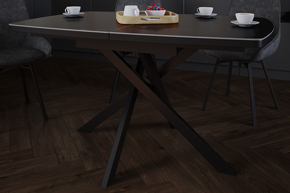 Стол DALLAS LIGHT 140 NERO CER – идеальное решение для тех, кто ценит стиль, функциональность и высокое качество. Прямоугольная форма столешницы размером 140 см легко расширяется на 40 см, обеспечивая дополнительное пространство для уютных обедов с семьей и друзьями. Особенностью этого стола является его черная столешница из керамики с оригинальным рисунком. Керамическая поверхность не только придает столу элегантный внешний вид, но устойчива к царапинам и перепаду температур, что делает этот стол идеальным выбором для повседневного использования. Дизайнерские утонченные ножки стола добавляют шарма и характера, подчеркивая индивидуальность вашего интерьера.