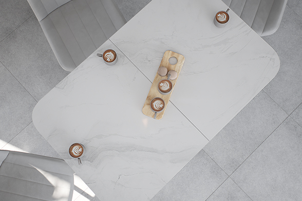Керамика — эстетичный и благородный натуральный материал, представленный в разнообразных оттенках и фактурах. Выполненные из него столешницы служат десятилетиями: за счет плотной структуры и высокой прочности им не страшны царапины, постоянный прямой контакт с влагой и перепады температуры.