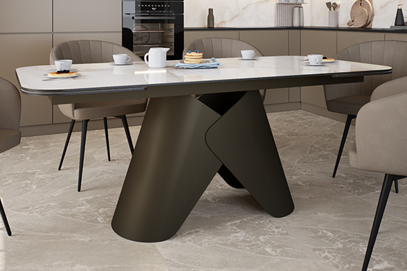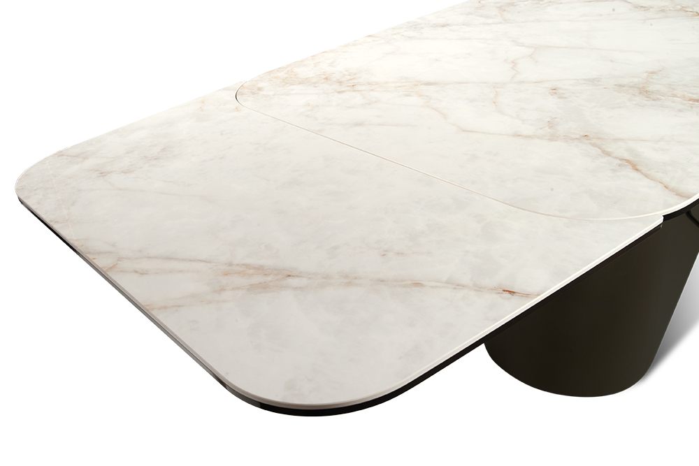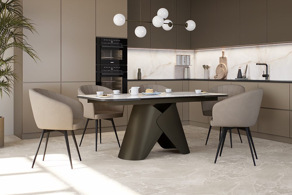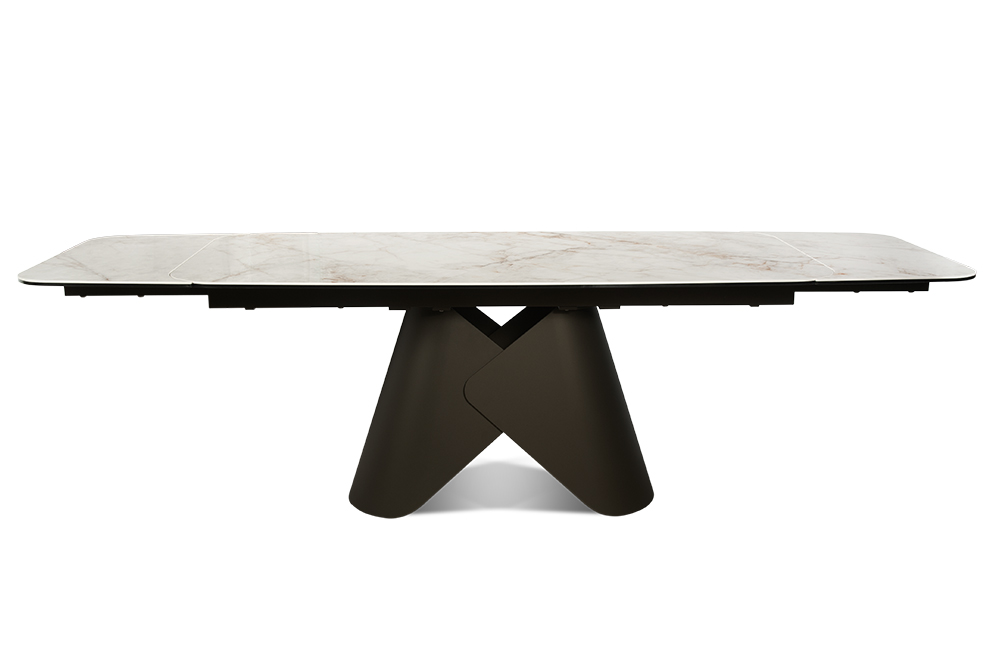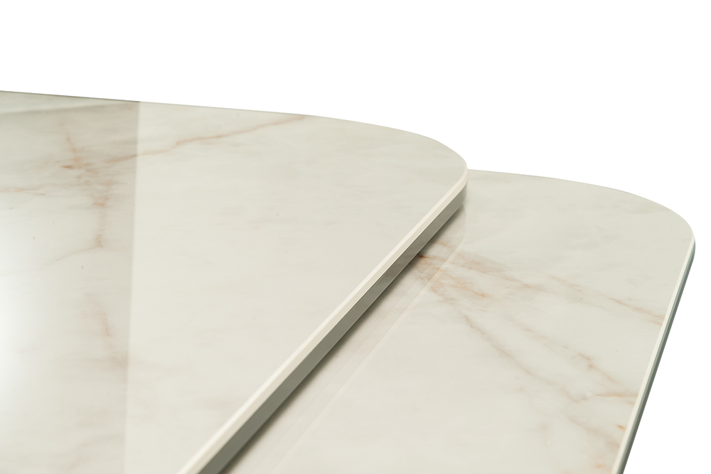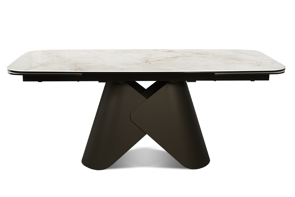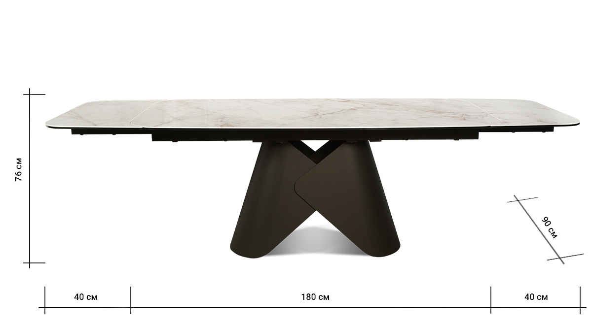 Привлекательность и функциональность сходятся в нашем обеденном столе MADRID 180 CALIFORNIA CER! Сочетание стильного дизайна и практичности делает его идеальным выбором для вашего обеденного пространства. Этот стол имеет размер 180 см, он легко трансформируется до внушительных 260 см, обеспечивая достаточно места для больших семейных посиделок или вечеринок с друзьями. Одним из ключевых преимуществ стола является его столешница из импортной глянцевой керамики в стильном молочном оттенке. Керамическая поверхность обладает высокой стойкостью к царапинам, ударам и температурным изменениям, что делает ее идеальным выбором для повседневного использования. Ножки бронзового цвета выполнены в уникальном стиле, придающем ему элегантный и современный вид, который гармонично впишется в любой интерьер.