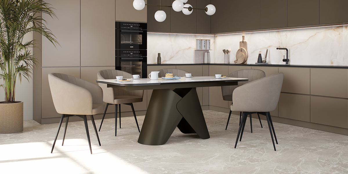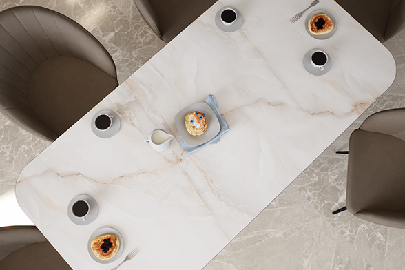 Керамика — эстетичный и благородный натуральный материал, представленный в разнообразных оттенках и фактурах. Выполненные из него столешницы служат десятилетиями: за счет плотной структуры и высокой прочности им не страшны царапины, постоянный прямой контакт с влагой и перепады температуры.
