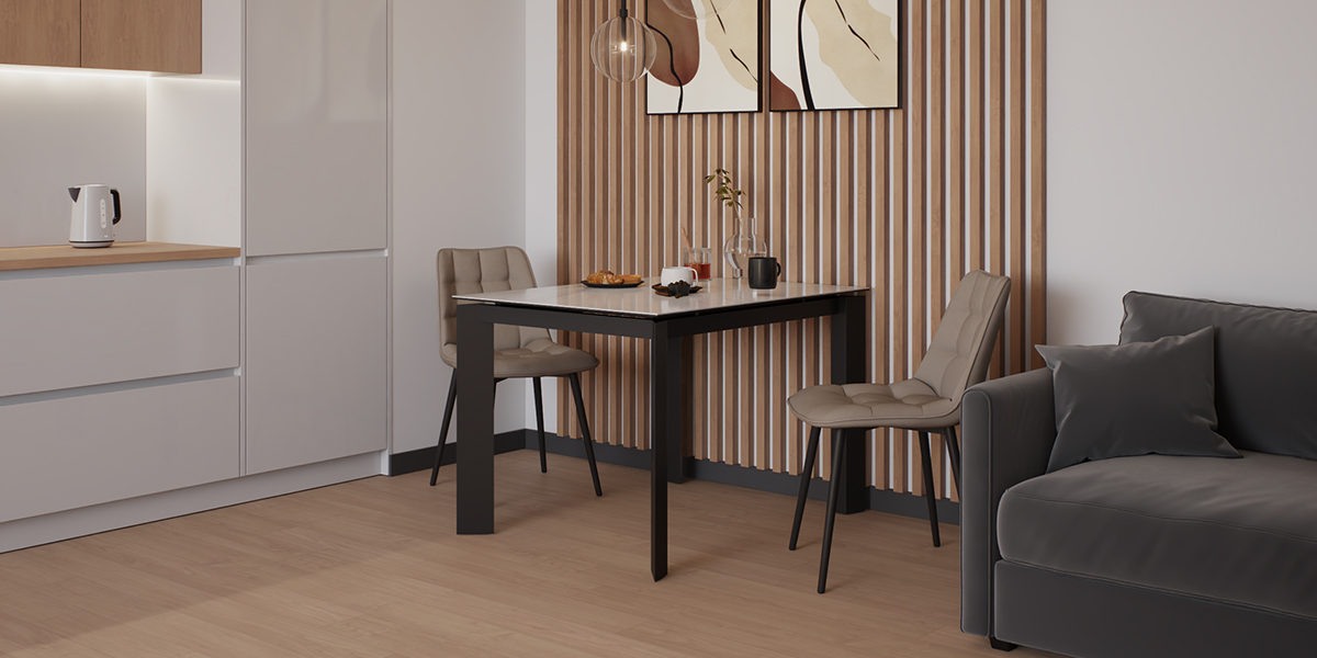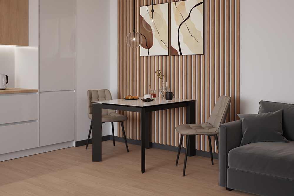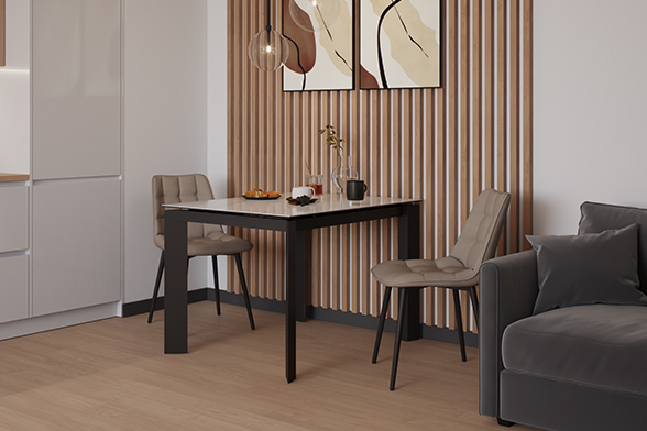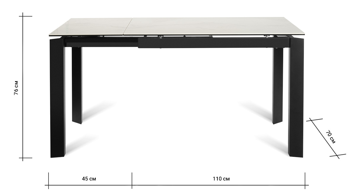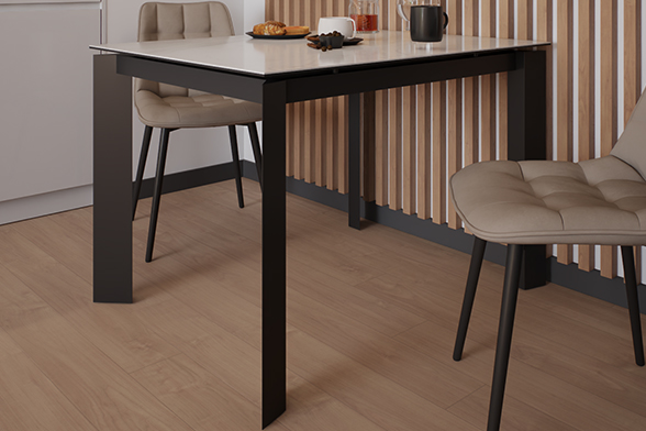Отличным приобретением станет стол NEVADA 110 MILKY WAY SH CER. В сложенном состоянии его габариты можно назвать символическими — 110 см длины и 70 см ширины. Но минимальным усилием стол можно увеличить на 45 см вручную. Завораживает красота этого предмета интерьера, который создан из прочной нержавеющей черной стали. С ней безукоризненно сочетается молочный цвет глянцевой керамической столешницы. Его по достоинству оценят те, кто стремятся привнести новизну в интерьер.