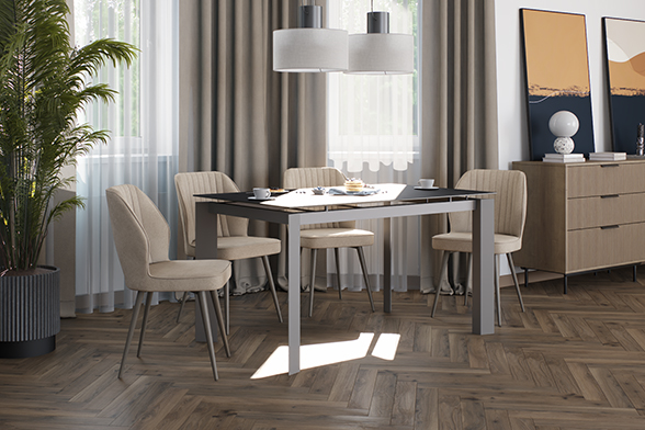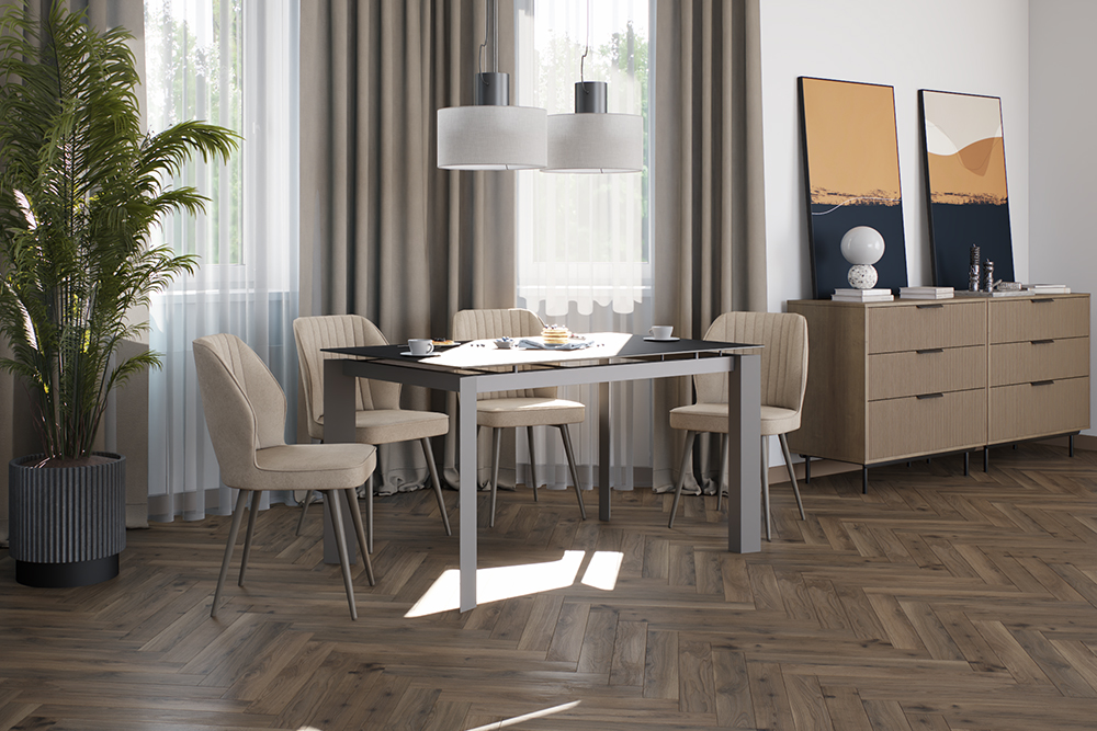 Отличным приобретением станет стол NEVADA 140 LATTE CER. В сложенном состоянии его габариты можно назвать символическими — 140 см длины и 85 см ширины. Но минимальным усилием стол можно увеличить на 50 см вручную. Завораживает красота этого предмета интерьера, который создан из прочной нержавеющей коричневой стали. С ней безукоризненно сочетается цвет керамической столешницы — изысканный латте. Его по достоинству оценят те, кто стремятся привнести новизну в интерьер.