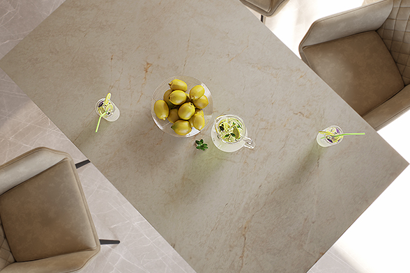 Керамика — эстетичный и благородный натуральный материал, представленный в разнообразных оттенках и фактурах. Выполненные из него столешницы служат десятилетиями: за счет плотной структуры и высокой прочности им не страшны царапины, постоянный прямой контакт с влагой и перепады температуры.