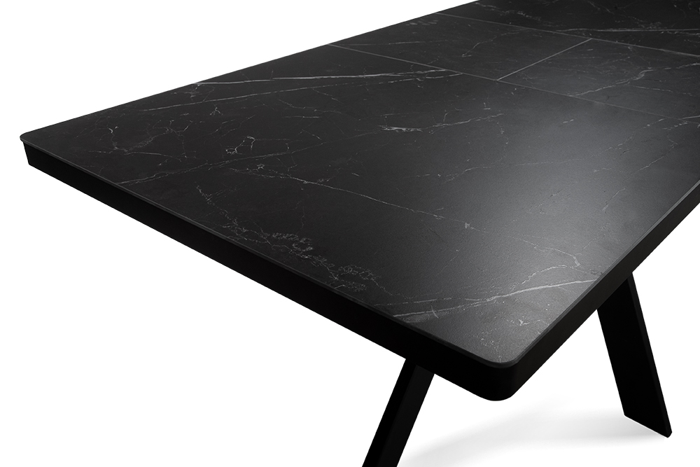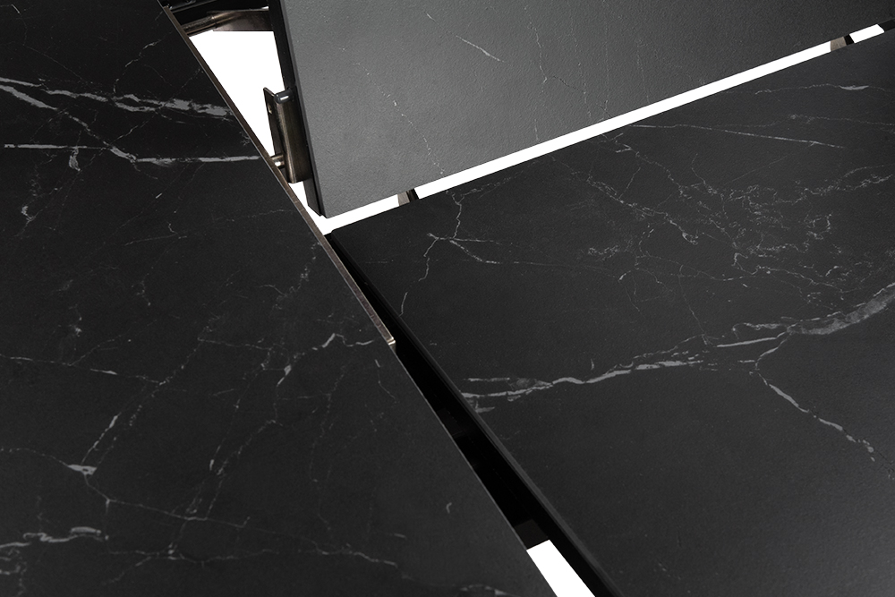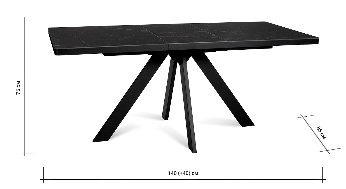 Идеальное сочетание стиля и функциональности - обеденный стол NORWAY LIGHT 140 Nero Cer. Этот стол привлекает внимание своей стильной керамической столешницей в черном цвете Nero, обладающей не только роскошным оттенком, но и уникальной текстурой и рисунком. Керамическая столешница не поддается царапинам, устойчива к выцветанию и легко очищается, что делает ее идеальным выбором для повседневного использования. Полуавтоматический механизм раскладывания добавляет удобства вашей жизни, позволяя вам легко увеличивать размер стола на 40 см по мере необходимости. Это особенно удобно при приеме гостей или организации семейных ужинов. Лучевидные ножки, исходящие из центра стола, создают стабильную основу и визуально придают легкость дизайну. Этот стол не только функционален, но и станет изысканным акцентом в вашем интерьере.
