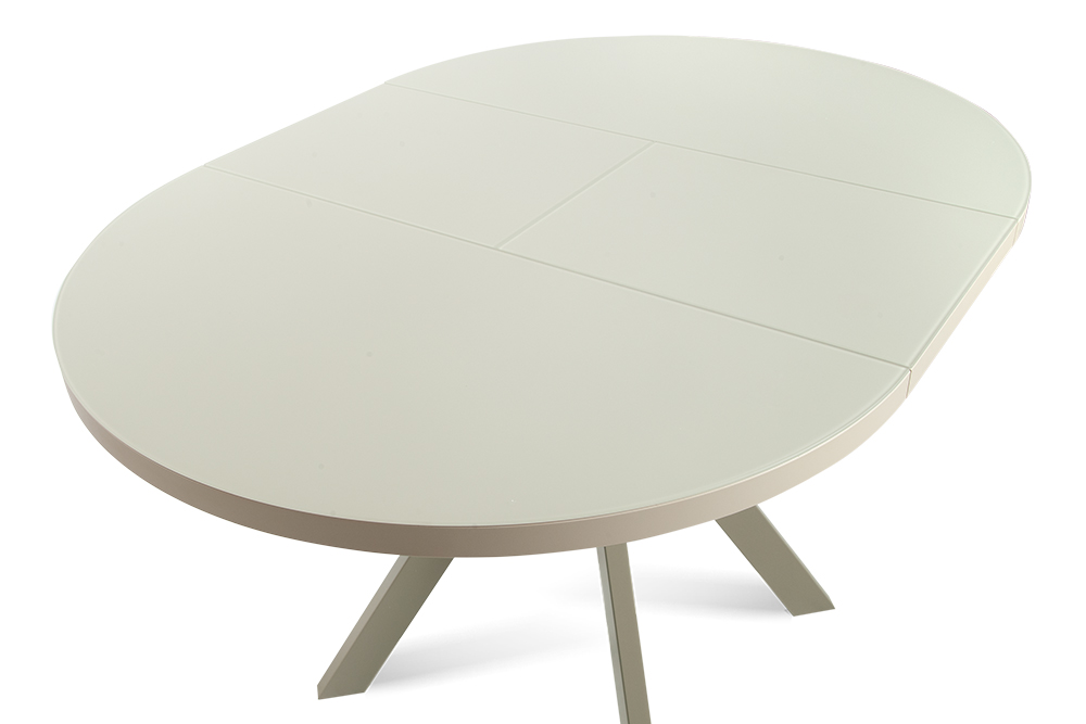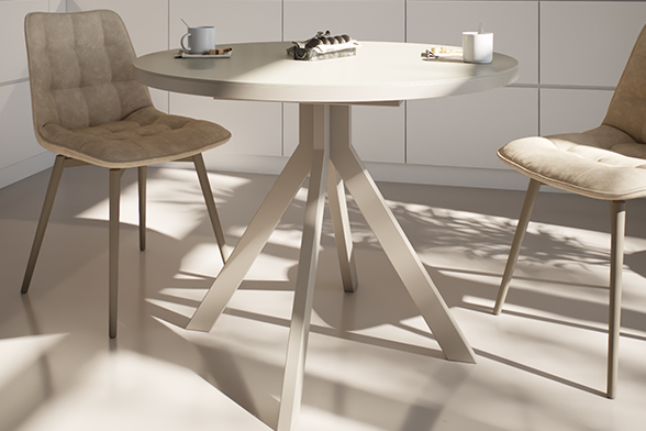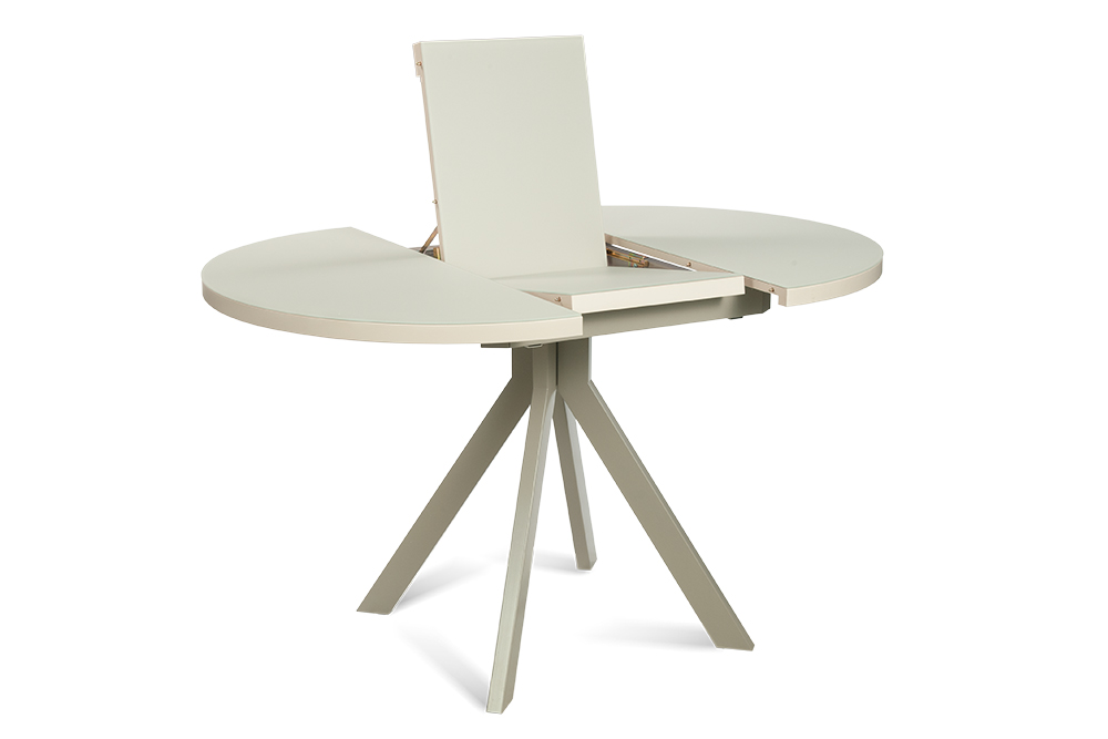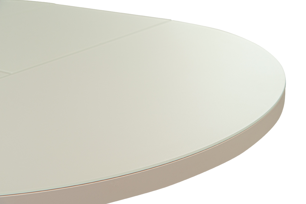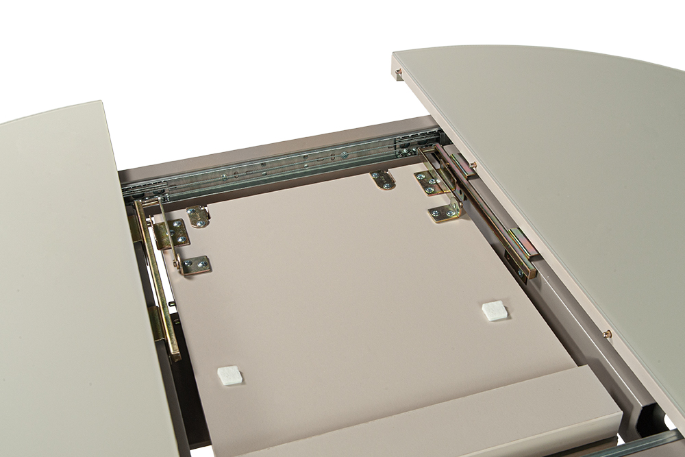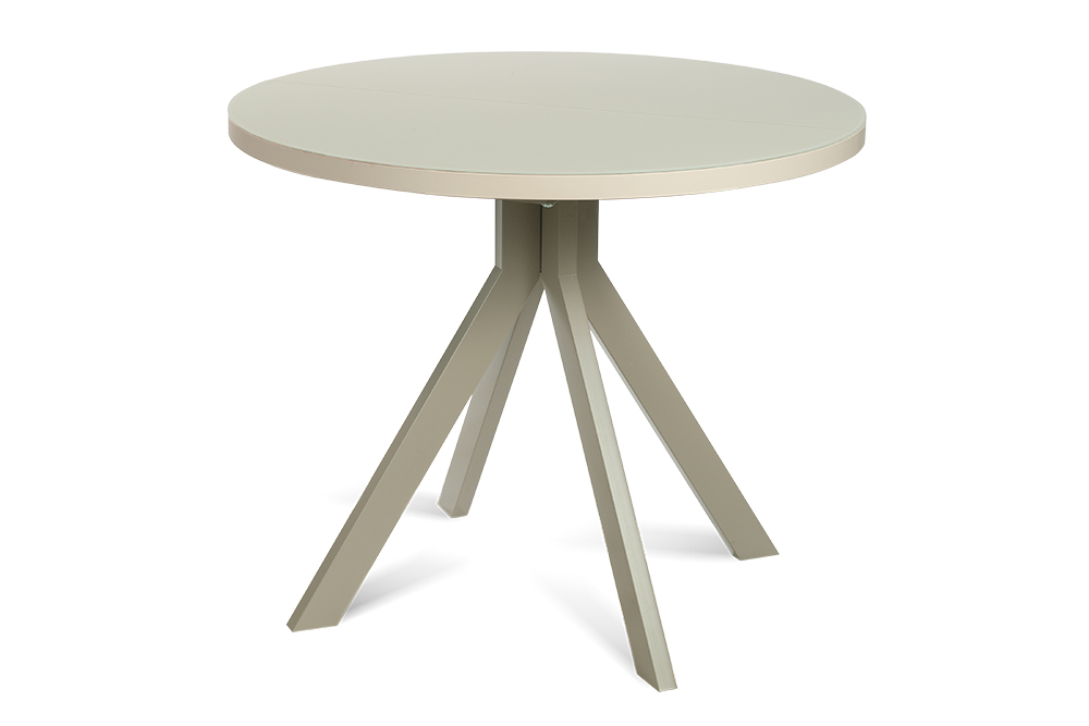 OSAKA 90 CAP SILK подходит для интерьеров современного формата. Круглая столешница выполнена из высокопрочного закаленного сатинированного стекла, а для опоры использована нержавеющая сталь, окрашенная в цвет капучино. Раскладной механизм позволяет получить больше полезной площади — длину можно увеличить на 35 см.