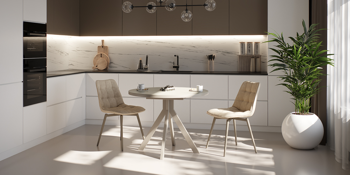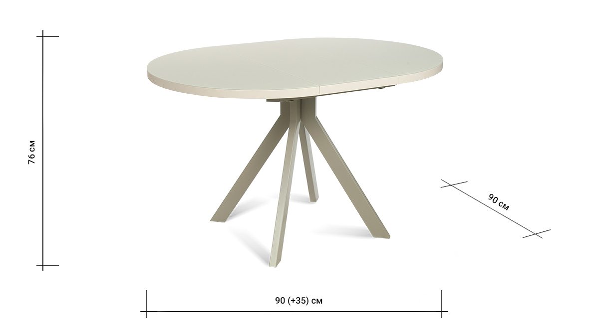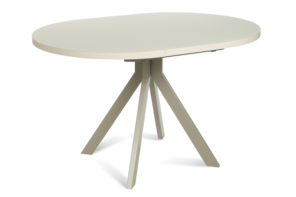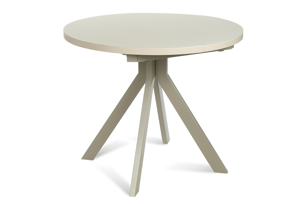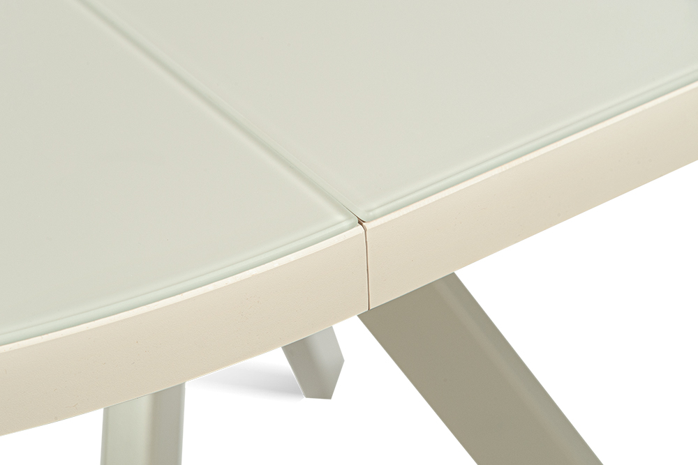 OSAKA 90 CAP SILK подходит для интерьеров современного формата. Круглая столешница выполнена из высокопрочного закаленного сатинированного стекла, а для опоры использована нержавеющая сталь, окрашенная в цвет капучино. Раскладной механизм позволяет получить больше полезной площади — длину можно увеличить на 35 см.