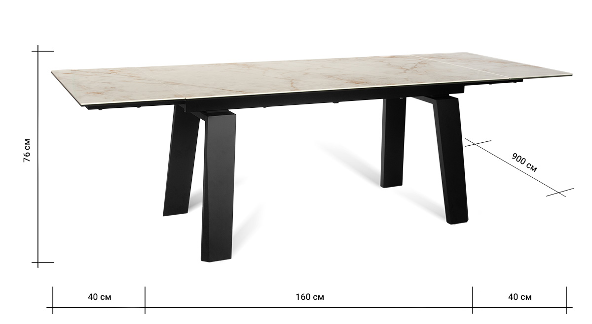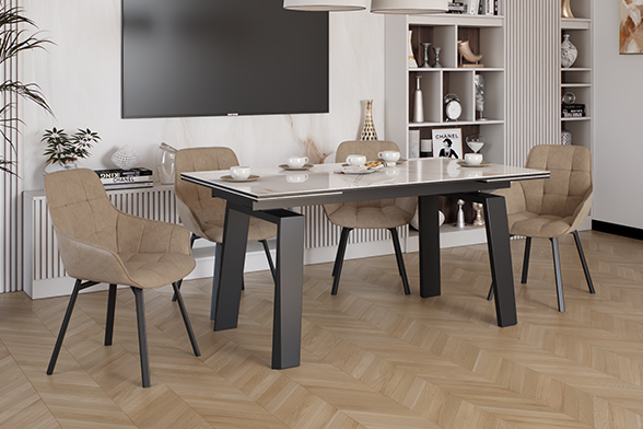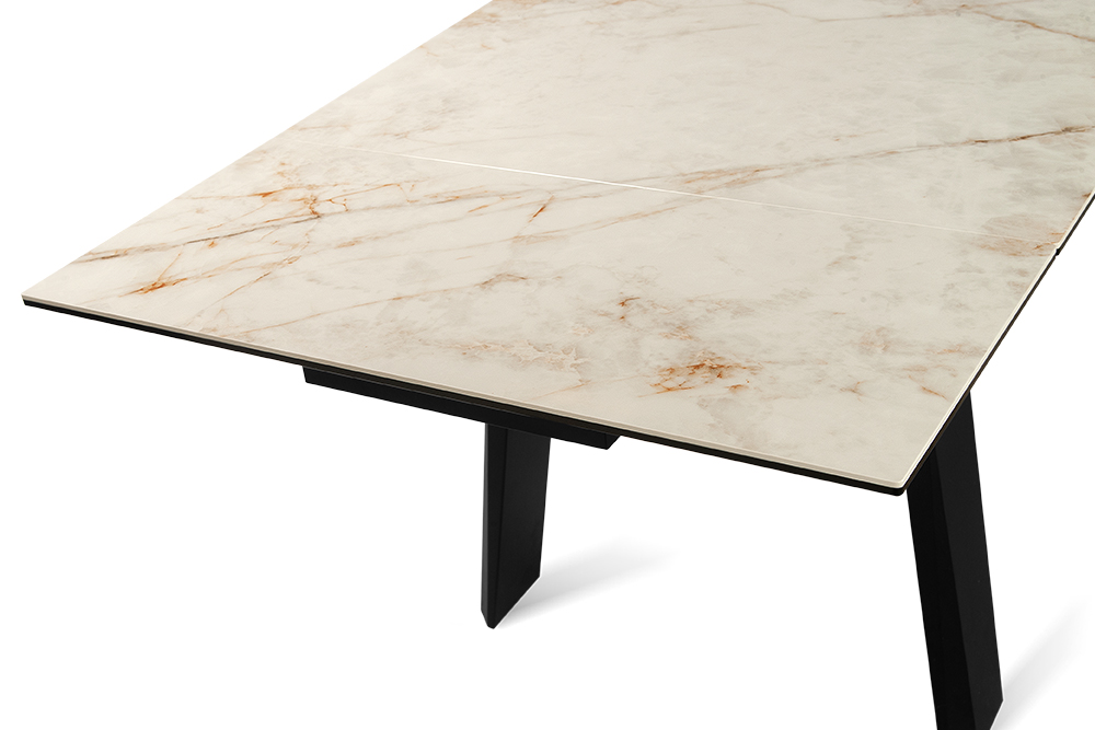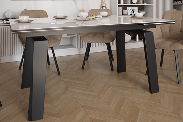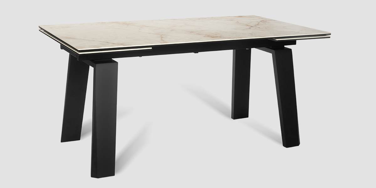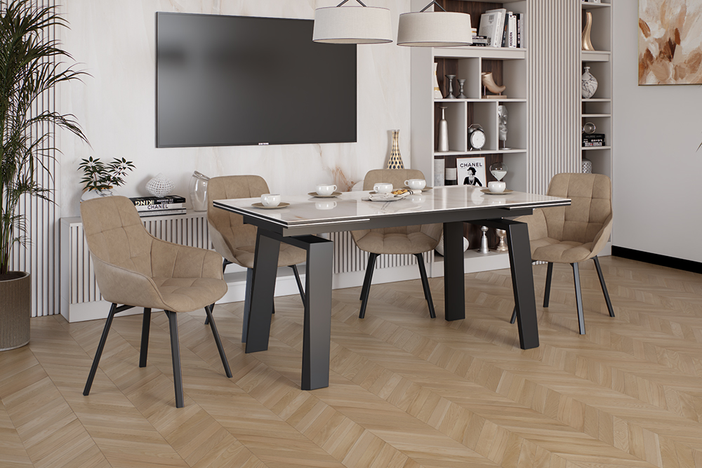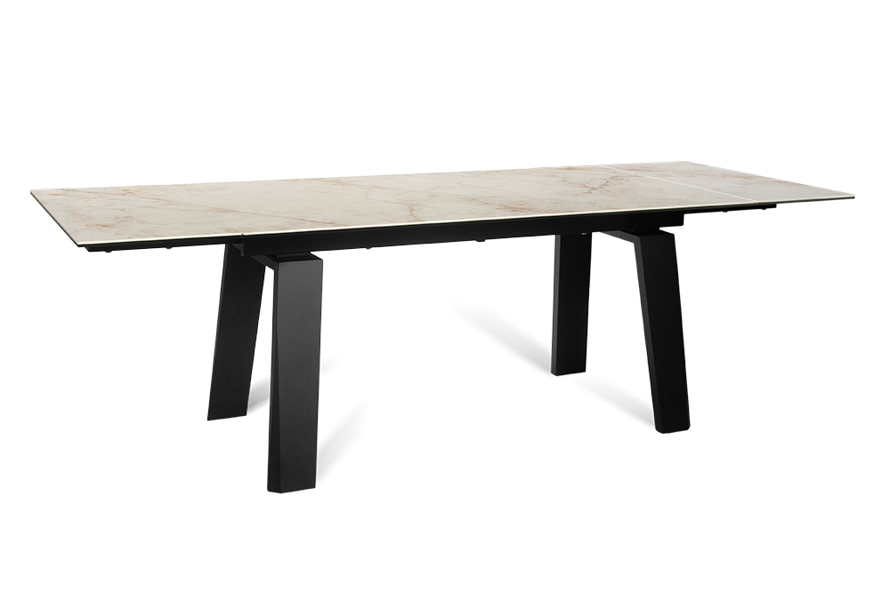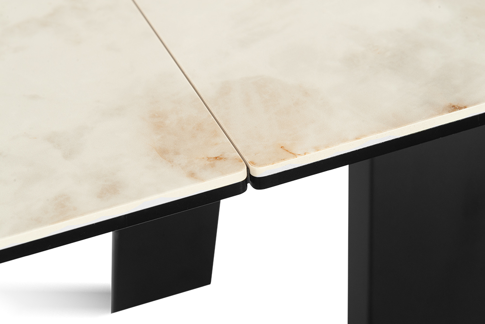 Позвольте столу стать PANAMA 160 CALIFORNIA CER центральным элементом вашего интерьера, объединяя функциональность, стиль и комфорт в одном изысканном обеденном пространстве. Глянцевая керамическая столешница молочного цвета с прожилками легко чистится, устойчива к царапинам и теплостойка, что делает этот стол идеальным для повседневного использования. Великолепные П-образные ножки обеспечивают не только стабильность, но и придают столу современный характер, который подчеркивает ваш неповторимый стиль. Особенность стола – возможность увеличения его длины на 80 см, что делает его идеальным решением для семейных ужинов и встреч с друзьями.