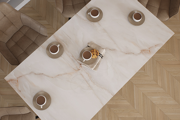 Керамика — эстетичный и благородный натуральный материал, представленный в разнообразных оттенках и фактурах. Выполненные из него столешницы служат десятилетиями: за счет плотной структуры и высокой прочности им не страшны царапины, постоянный прямой контакт с влагой и перепады температуры.