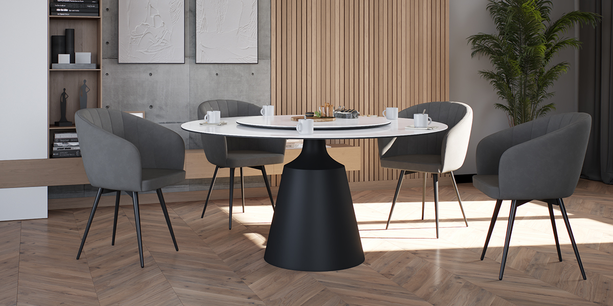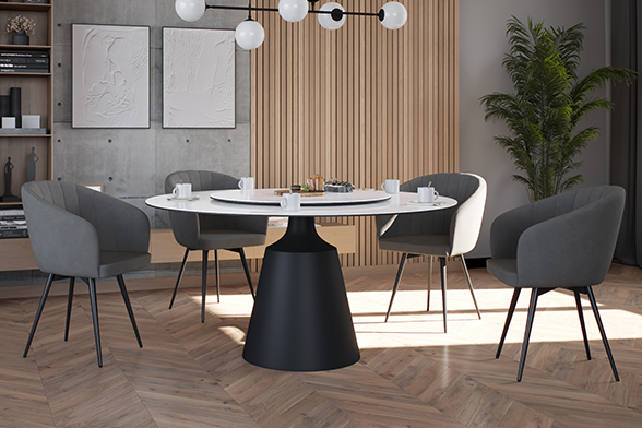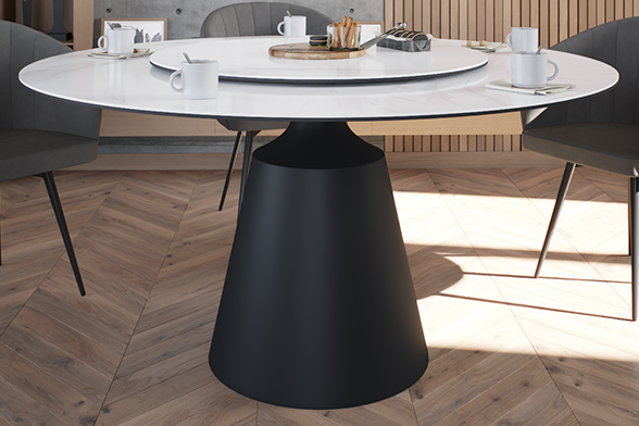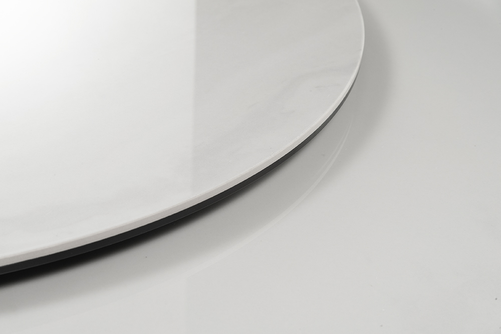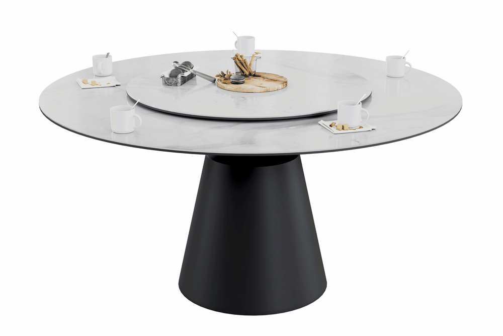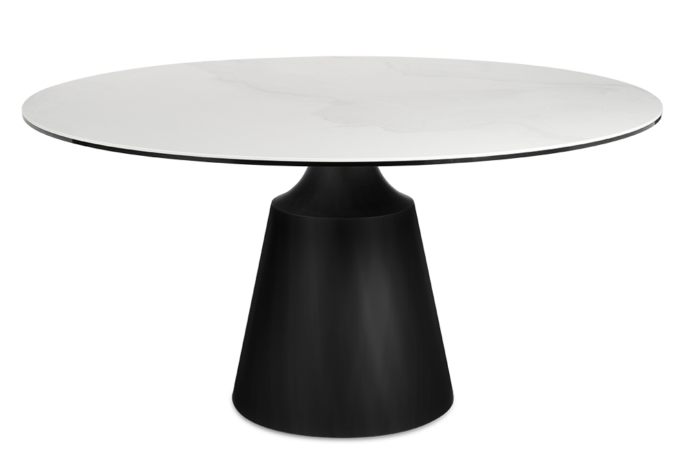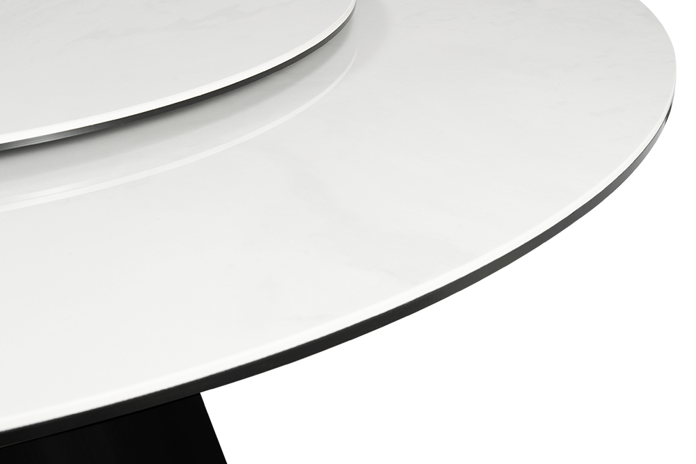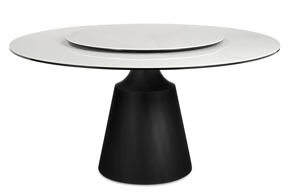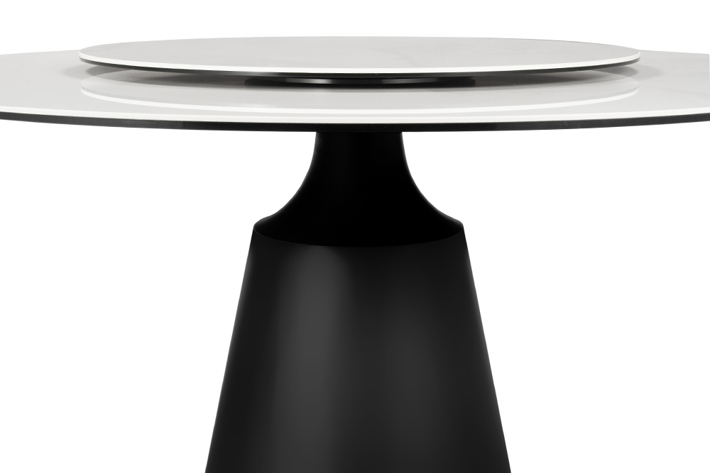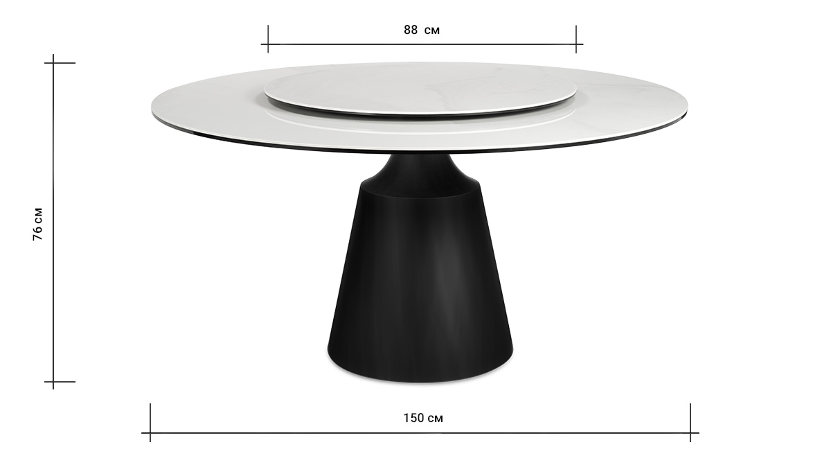 Обеденный стол PETER 150 MILKY WAY SH CER BK идеально сочетает стиль и функциональность, делая его центральным элементом любой гостиной или кухни. Глянцевая керамическая столешница молочного цвета с уникальным рисунком придает столу элегантный и современный вид. Благодаря материалу, поверхность стойкая к перепадам температуры, не боится влаги и легко чистится, что делает его не только красивым, но и практичным. Двойная столешница — одна из ключевых особенностей стола. Основная часть диаметром 150 см создаёт простор для гостей и блюд, а вращающаяся часть диаметром 88 см удобна для сервировки и подачи. Эта функция добавляет удобство, позволяя легко делиться блюдами. Особое внимание привлекает ножка стола: она выполнена из металла черного цвета добавляя ощущение премиальности. Сужающаяся книзу форма делает стол визуально лёгким, добавляя современную геометрическую эстетику. Стол гармонично впишется как в классический, так и в современный интерьер, придавая ему изысканность и стиль.