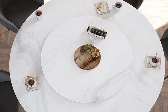 Керамика — эстетичный и благородный натуральный материал, представленный в разнообразных оттенках и фактурах. Выполненные из него столешницы служат десятилетиями: за счет плотной структуры и высокой прочности им не страшны царапины, постоянный прямой контакт с влагой и перепады температуры.