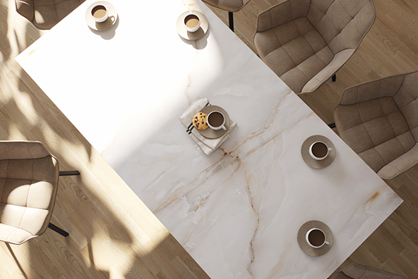 Керамика — эстетичный и благородный натуральный материал, представленный в разнообразных оттенках и фактурах. Выполненные из него столешницы служат десятилетиями: за счет плотной структуры и высокой прочности им не страшны царапины, постоянный прямой контакт с влагой и перепады температуры.