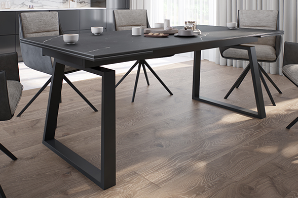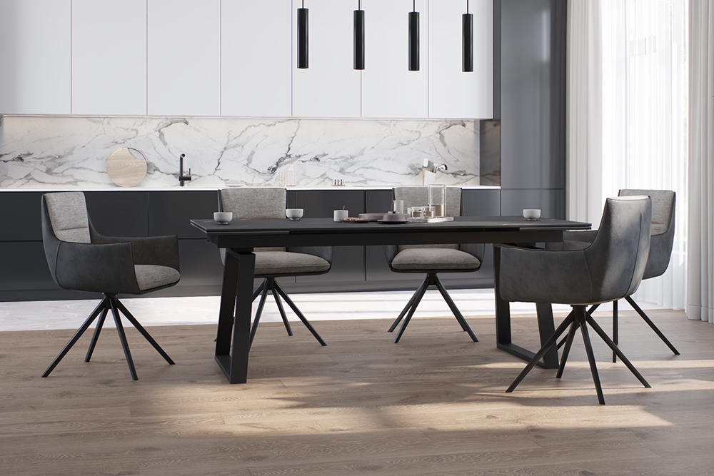 Стол ROVENA 200 PLATINUM CER станет настоящим хозяином кухни. Он крупный и массивный, того и гляди задавит своим авторитетом. В основе каркаса нержавеющая сталь - прочный и долговечный материал. Приручить этого зверя несложно - при помощи лаконичных стульев с похожей геометрией, но более минималистичных и скромных форм. Вместе они создадут стильный и оригинальный тандем. Помимо своих и так весьма внушительных габаритов, стол ROVENA 200 PLATINUM CER можно разложить, получив ещё 100 сантиметров поверхности. Керамическая столешница темно-серого – ультрастильное решение для обеденной зоны. Деликатную текстуру столешницы хочется рассмотреть получше, потрогать и проверить на прочность.