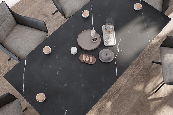 Керамика — эстетичный и благородный натуральный материал, представленный в разнообразных оттенках и фактурах. Выполненные из него столешницы служат десятилетиями: за счет плотной структуры и высокой прочности им не страшны царапины, постоянный прямой контакт с влагой и перепады температуры.