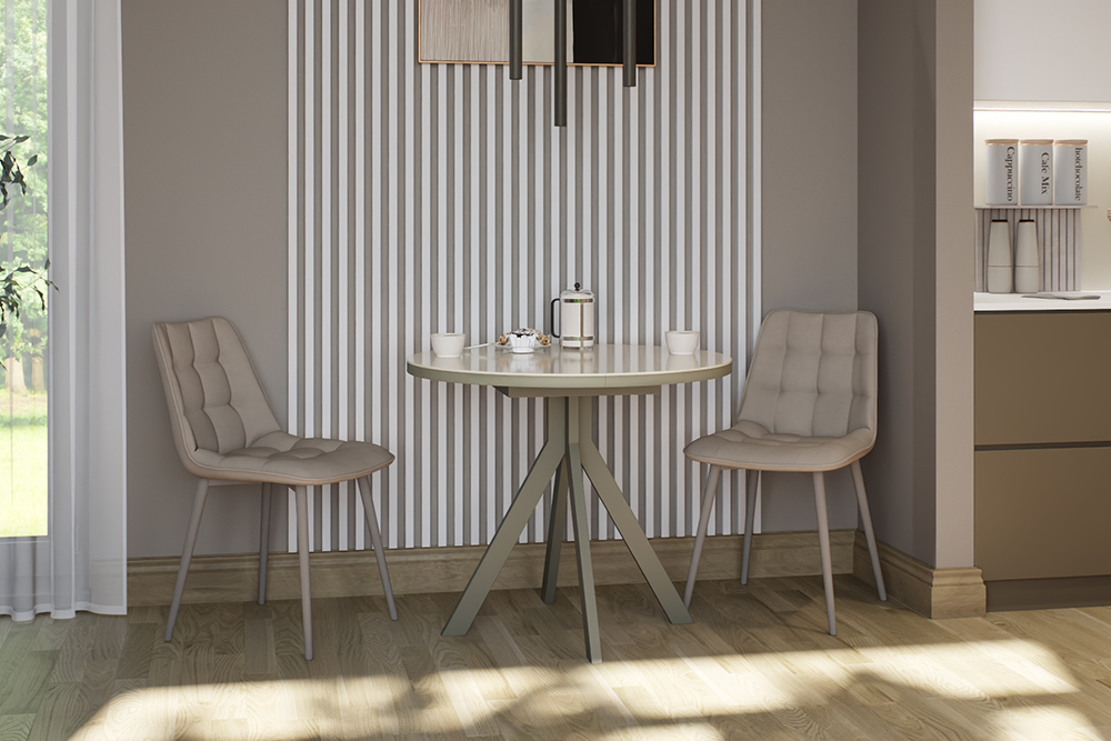Эффектный стул B105 LATTE VL10 LT на четырех ножках выполнен из износоустойчивого металла. Удобное мягкое сиденье с велюровой обивкой цвета латте привлекают внимание к дизайну стула, а благодаря эргономичной форме обеспечивается максимальный комфорт. Стул подойдет как для просторной современной кухни, так и для гостиной, кафе или других помещений с интерьером в стиле лофт, модерн или минимализм.