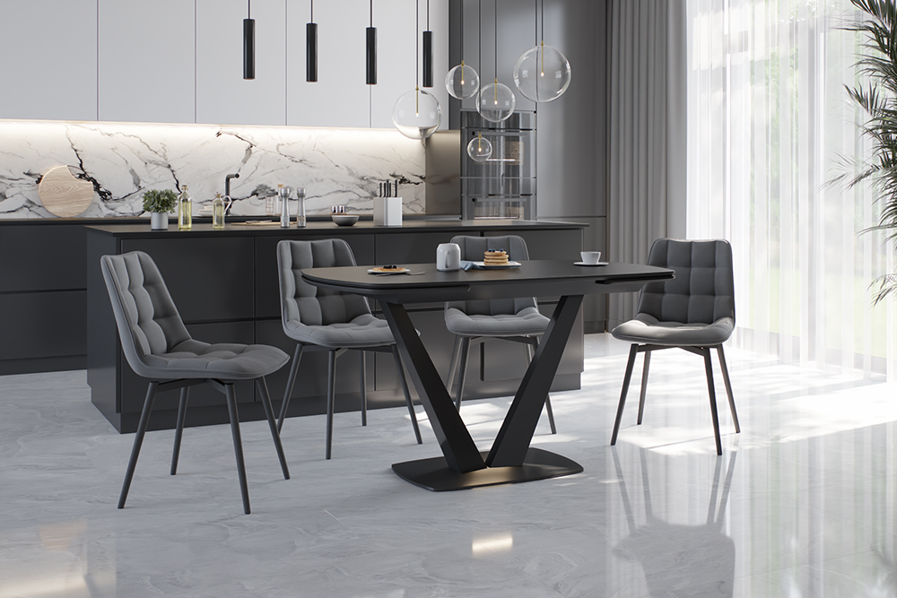 Эффектный стул B105-m DARK GREY VL18 BK на четырех ножках выполнен из износоустойчивого металла. Удобное мягкое сиденье с велюровой обивкой темно-серого цвета привлекают внимание к дизайну стула, а благодаря эргономичной форме и поворотному механизму на 360° обеспечивается максимальный комфорт. Стул подойдет как для просторной современной кухни, так и для гостиной, кафе или других помещений с интерьером в стиле лофт, модерн или минимализм.
