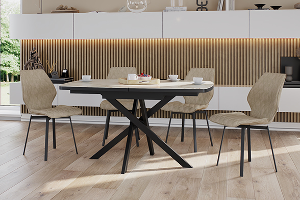 Благородная фактура, придаёт интерьеру атмосферу изящества — это только часть преимуществ экозамши. Кроме того, она долговечная и прочная, не боится воздействия ультрафиолета и повышенной влажности, гигроскопична — идеальная обивки для стульев.