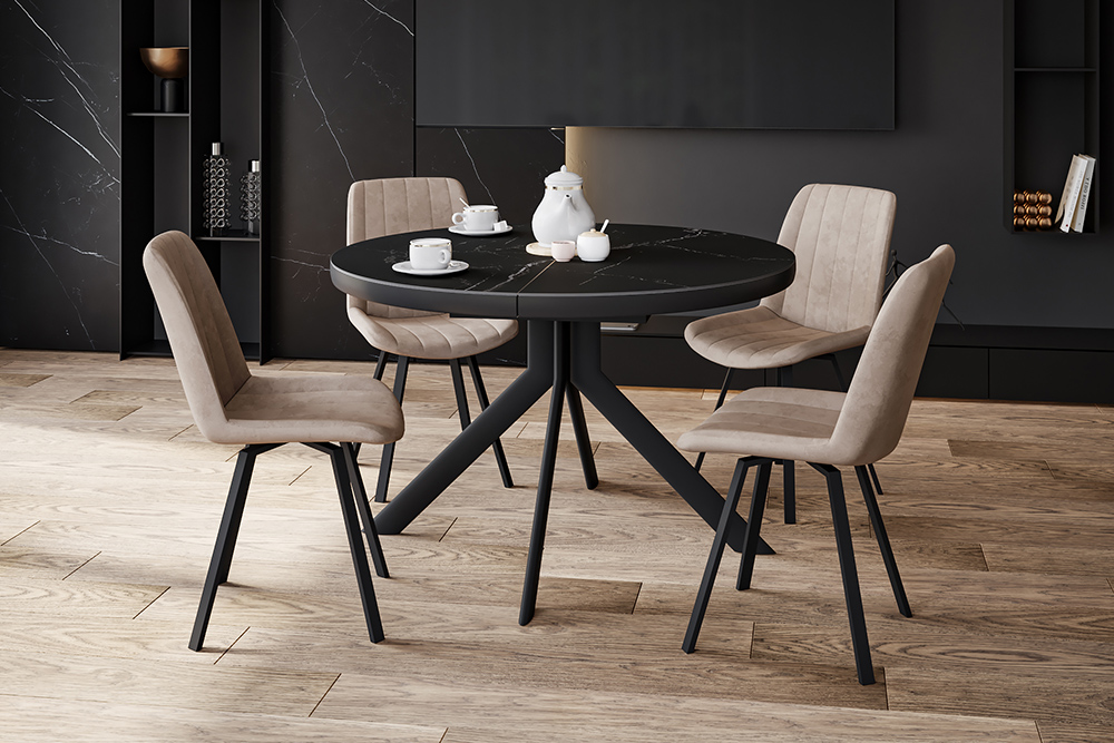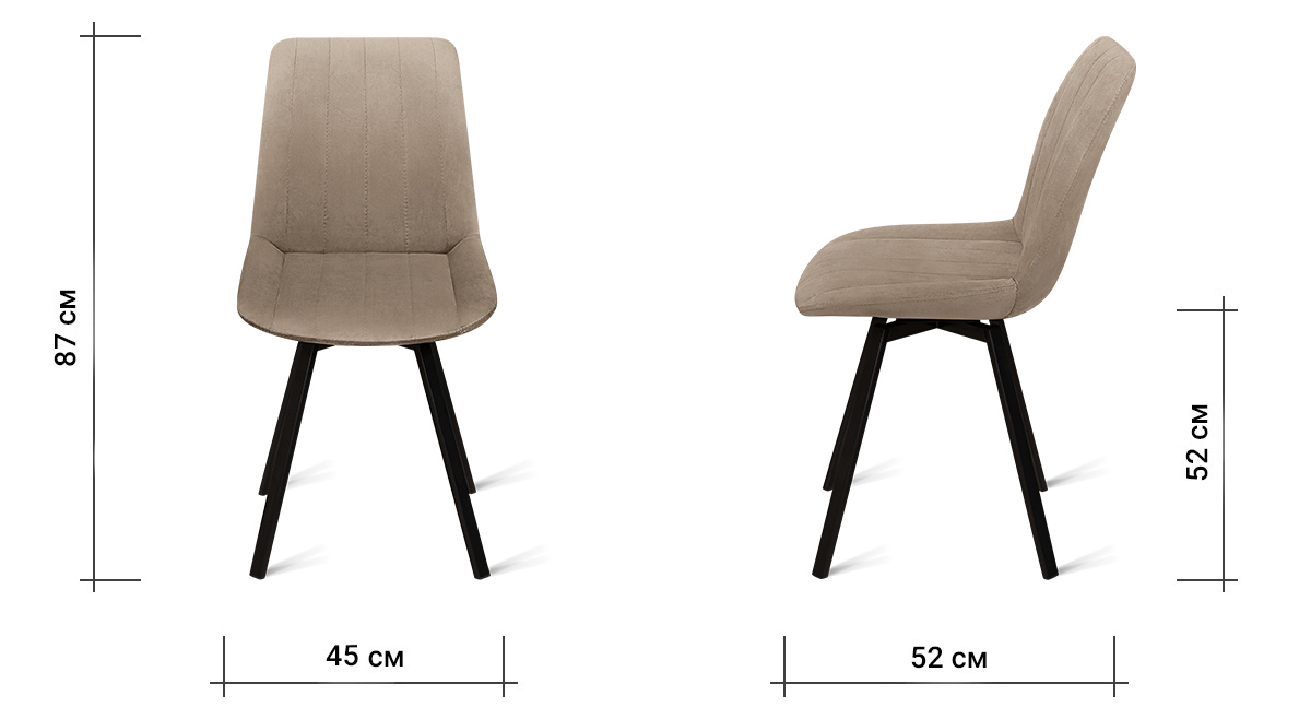 Премиальный велюр цвета латте, из которого изготовлена обивка стула B224-M LATTE VL61 BK, эффектно сочетается с черными ножками из нержавеющей стали. Металлический каркас обеспечивает долговечность и надежность конструкции даже при больших нагрузках, а эргономичная форма сиденья и спинки поддерживает удобное положение тела и создает комфорт. При это модель имеет поворотный механизм, который позволяет занять максимально комфортное расположение. Стул B224-M LATTE VL61 BK подходит для оформления столовой, кухни или гостиной, а также кафе, конференц-залов и приемных.