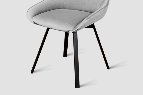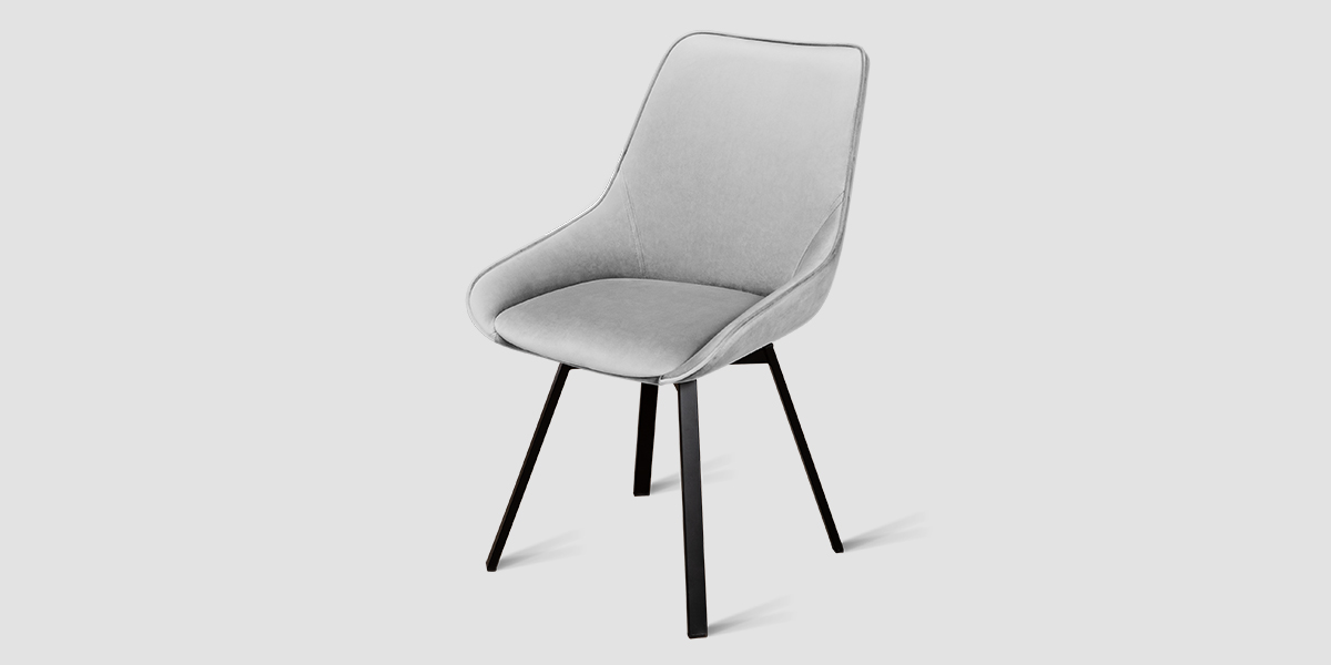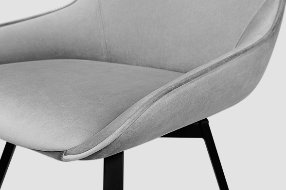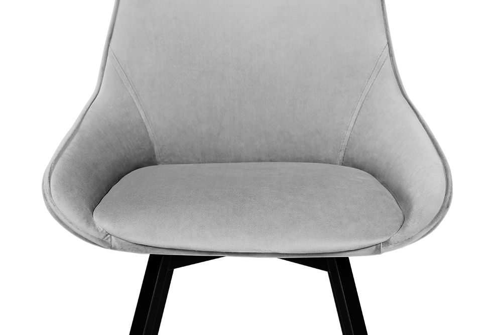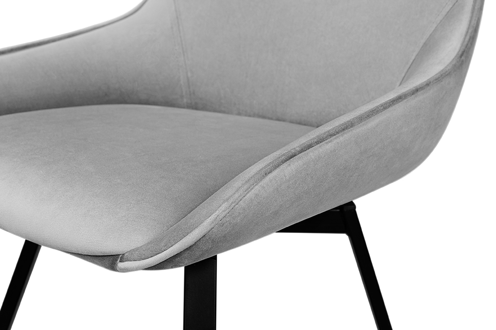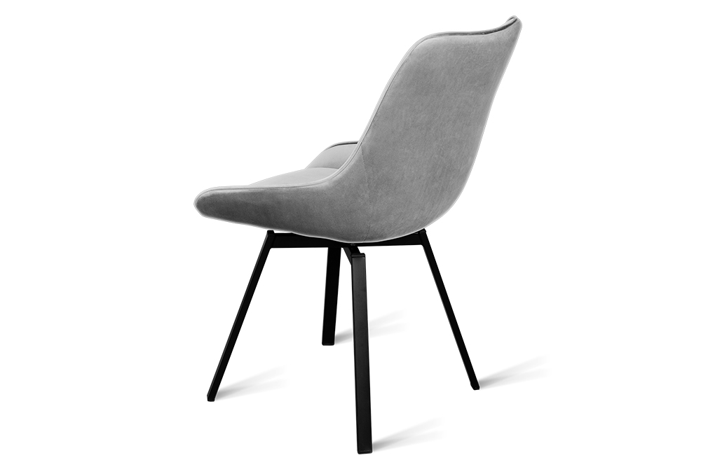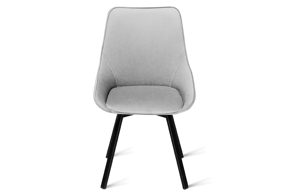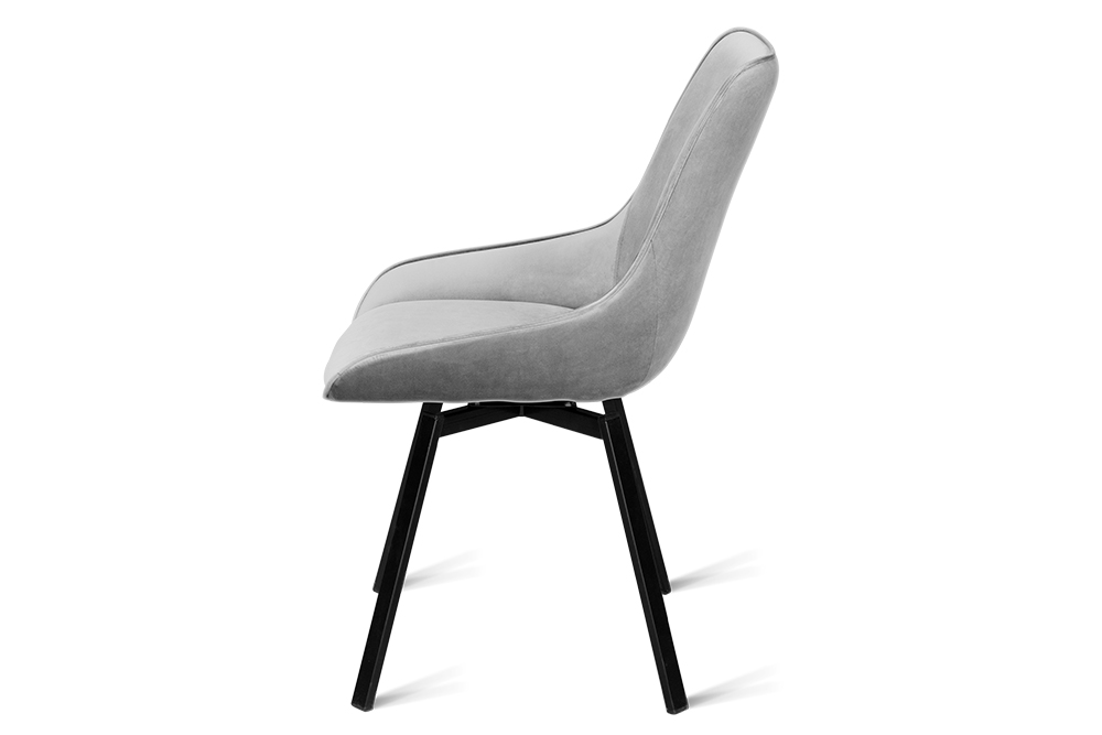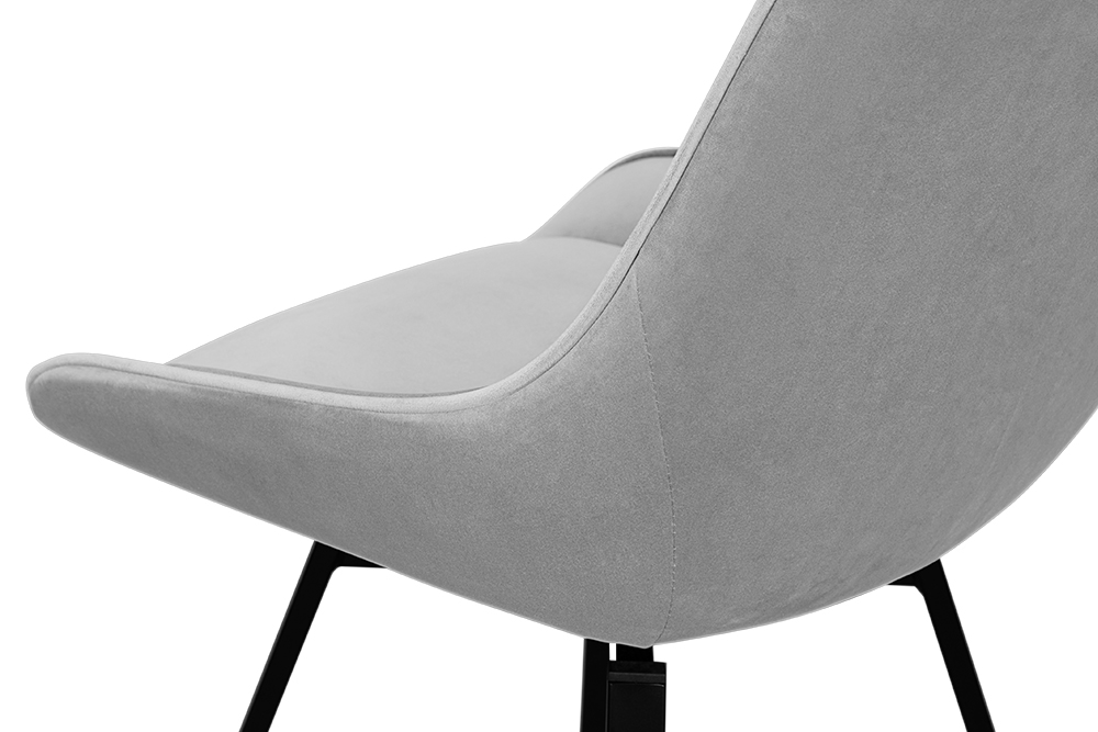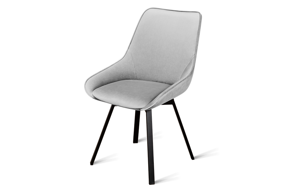 Стул B313-m LIGHT GREY VL08 BK — минималистичная модель для офисного пространства или обеденной зоны. Обивка универсального светло-серого цвета изготовлена из фактурного велюра. Спинка с низкими обтекаемыми подлокотниками и сиденье выполнены в форме «мягких квадратов». Для опоры с четырьмя наклонными ножками выбрана долговечная нержавеющая сталь с черным покрытием. Стул оснащён поворотным сиденьем, который позволяет занять максимально комфортное расположение.
