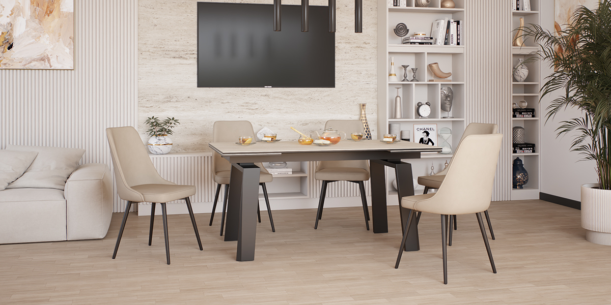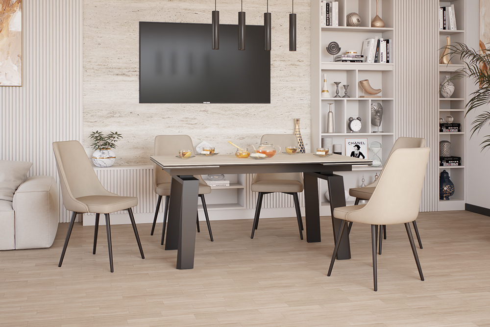 Обеденный стул В340-m LATTE BK — идеальное сочетание утонченного дизайна и продуманного комфорта. Его высокая спинка с мягкими изгибами не только добавляет интерьеру статусности, но и обеспечивает идеальную поддержку спины, превращая каждый прием пищи или долгие вечерние беседы в удовольствие. Лаконичный дизайн в духе современной классики с черными металлическими ножками сочетает строгость линий и легкость форм, гармонируя как с традиционными, так и с актуальными интерьерами. Поворотный механизм на 360 градусов добавляет стулу функциональности, позволяя легко менять положение — всё происходит плавно и бесшумно. Мягкая обивка из премиального велюра в цвете "латте" сочетает тактильную нежность с благородной матовой поверхностью, которая сохраняет идеальный вид даже при активном использовании. Материал протестирован на 75 000 циклов истирания — это подтверждает его премиальную износостойкость: обивка не теряет насыщенности цвета, мягкости и безупречной фактуры годами.