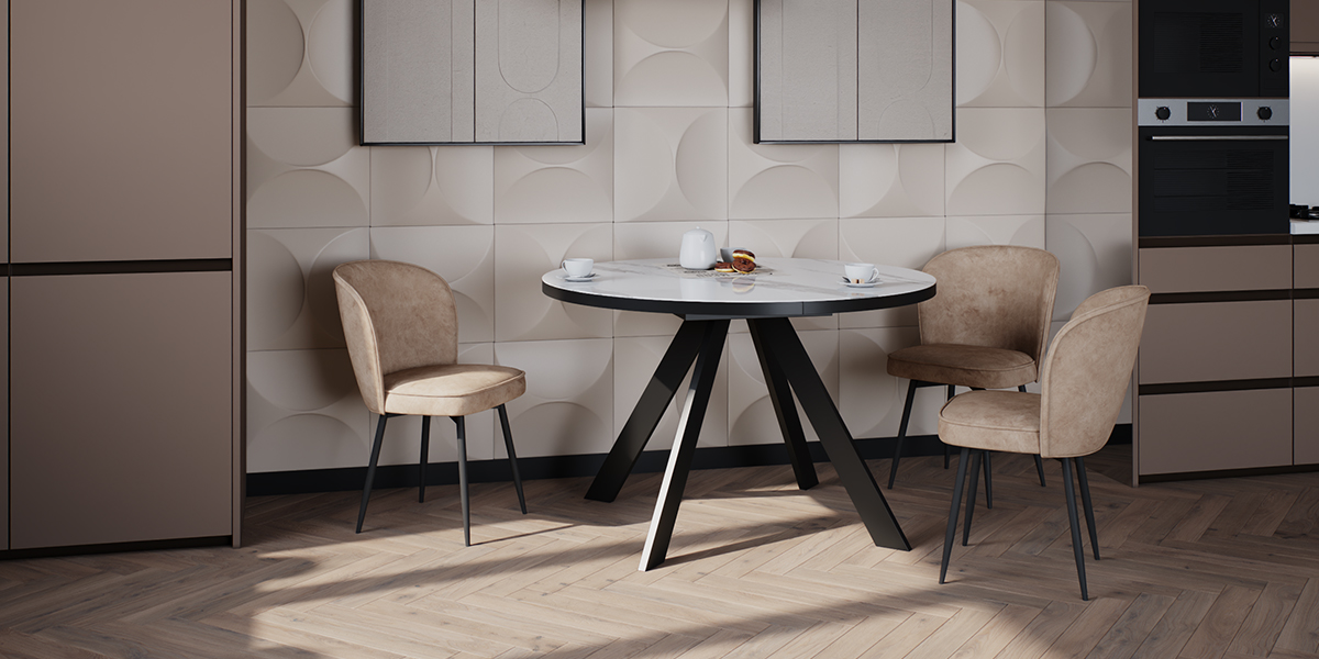 Стул B508-m ART LATTE — универсальное решение для комфорта и стиля в любом пространстве. Его дугообразная спинка, напоминающая плавный изгиб радуги, обеспечивает идеальную поддержку спины, а мягкие очертания создают уют даже при долгом сидении. Поворотный механизм на 360° дает свободу движений: легко развернитесь к собеседнику за обеденным столом, скорректируйте положение у туалетного столика или просто смените ракурс во время работы. Черные металлические ножки добавляют лаконичную прочность и гармонично сочетаются с современной или классической мебелью. Обивка из плюшевого велюра теплого цвета латте устойчив к истиранию и сохраняет роскошную текстуру годами. Ухаживать за ним просто — достаточно аккуратной чистки. Стул B508-m ART LATTE легко адаптируется к вашим задачам: будь то семейные ужины, утренние ритуалы у зеркала или прием гостей.
