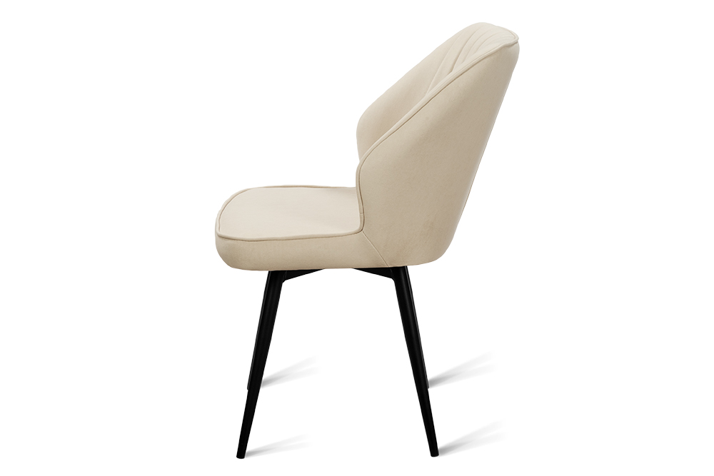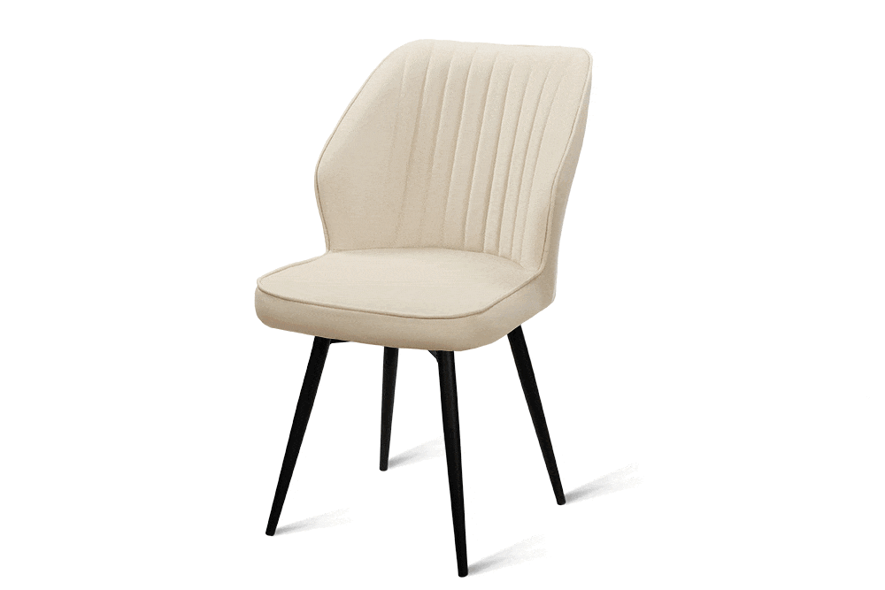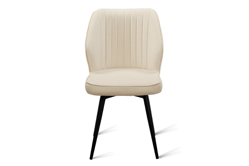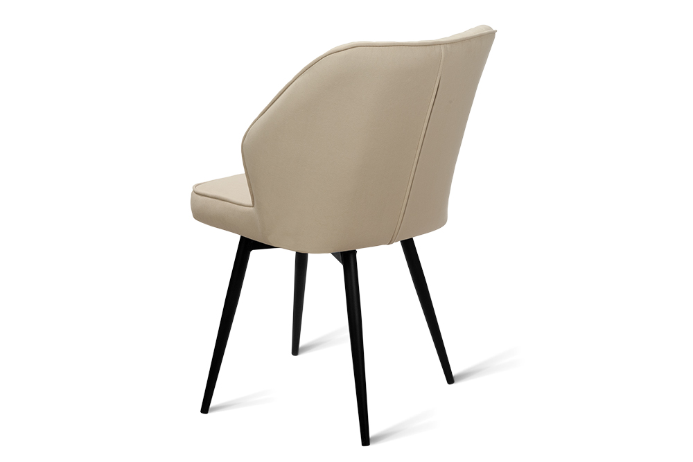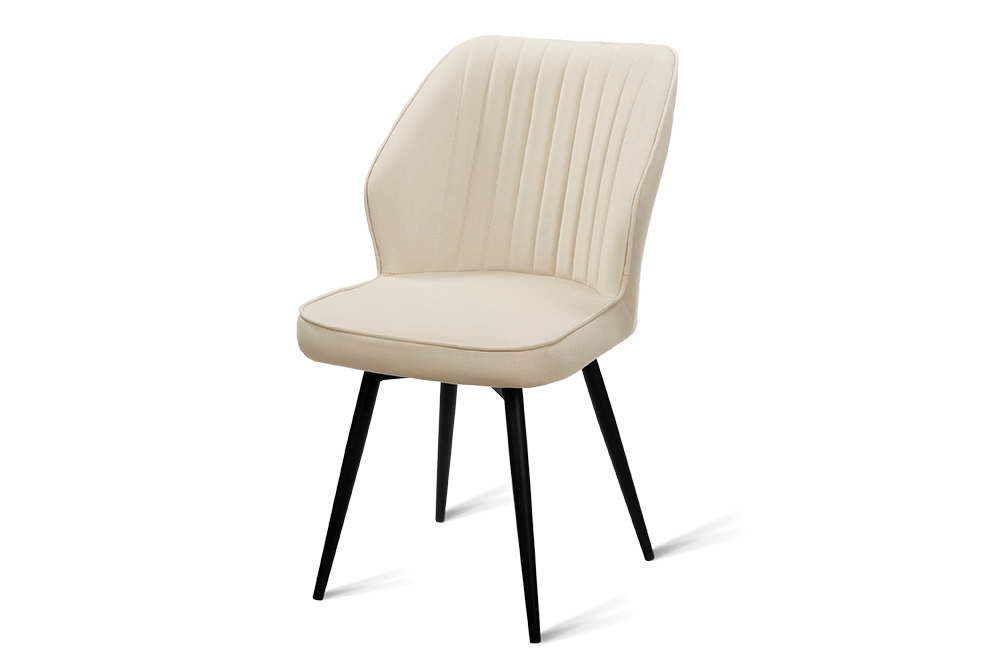 Обеденный стул В521-m CAP BK — это баланс сдержанного дизайна и ежедневного удобства. Его эргономичная форма с выраженной боковой поддержкой и вертикальной декоративной строчкой обеспечивает комфорт даже во время продолжительных посиделок за столом. Поворотный механизм на 360 градусов обеспечивает плавное вращение — легко следите за беседой, дотягиваетесь до дальних блюд или просто меняете ракурс, не вставая с места. Обивка выполнена из мягкого, практичного велюра светло-бежевого цвета, устойчивого к загрязнениям и не боящегося когтей домашних питомцев, что делает стул идеальным для активной семейной жизни. Чёрные металлические ножки придают модели строгий, завершённый вид и гарантируют надёжную устойчивость.
