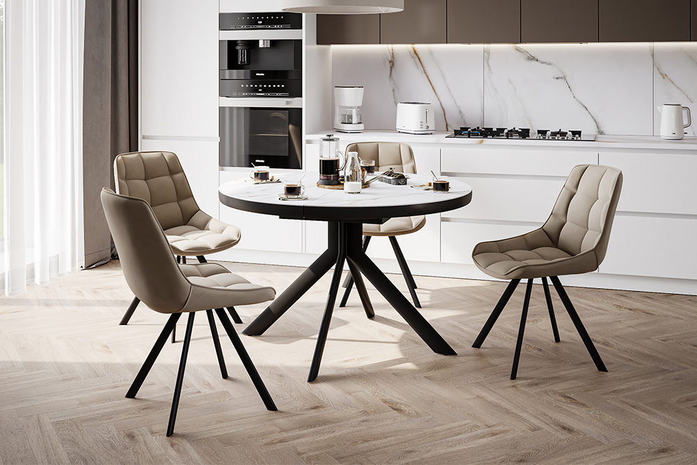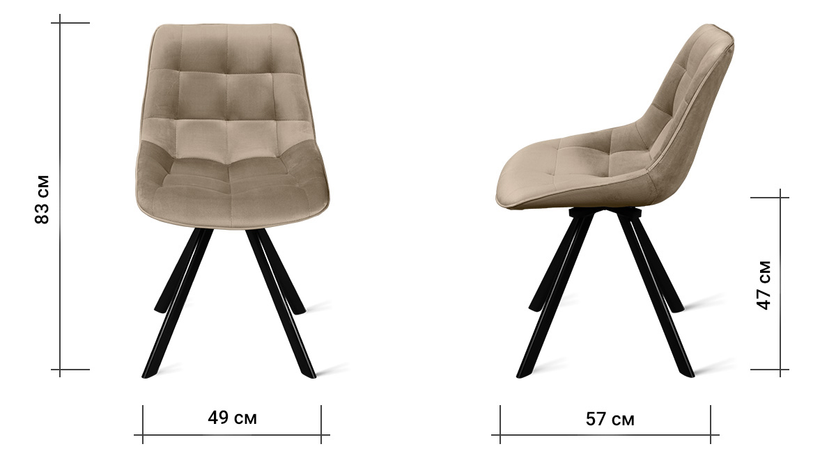 Стул B607-m LATTE VL61 BK имеет благородный дизайн, цвет латте гармонично впишется как в классический, так и в современный дизайнерский интерьер. Материалом его обивки выступает тщательно подобранный велюр, совмещающий в себе массу преимуществ: прочность, стойкость к износу и мягкую бархатную текстуру. Стул оснащен просторным сиденьем, по бокам которого расположены чуть выступающие подлокотники, а также невысокой эргономичной спинкой и поворотным механизмом на 360 градусов. А массивные ножки из металла черного цвета делают модель устойчивой и безопасной.