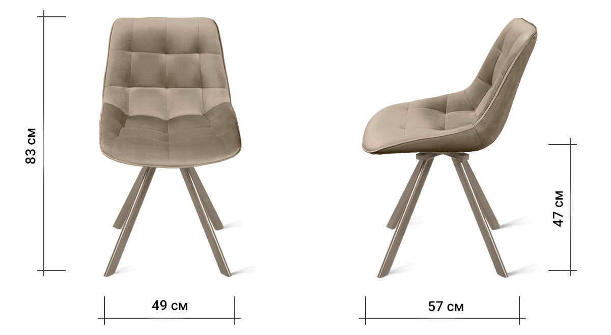 Стул B607-m LATTE VL61 LT имеет благородный дизайн, цвет латте гармонично впишется как в классический, так и в современный дизайнерский интерьер. Материалом его обивки выступает тщательно подобранный велюр, совмещающий в себе массу преимуществ: прочность, стойкость к износу и мягкую бархатную текстуру. Стул оснащен просторным сиденьем, по бокам которого расположены чуть выступающие подлокотники, а также невысокой эргономичной спинкой и поворотным механизмом на 360 градусов. А массивные ножки из металла цвета латте делают модель устойчивой и безопасной.