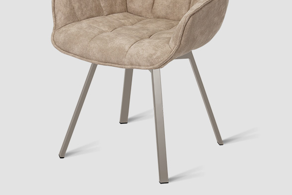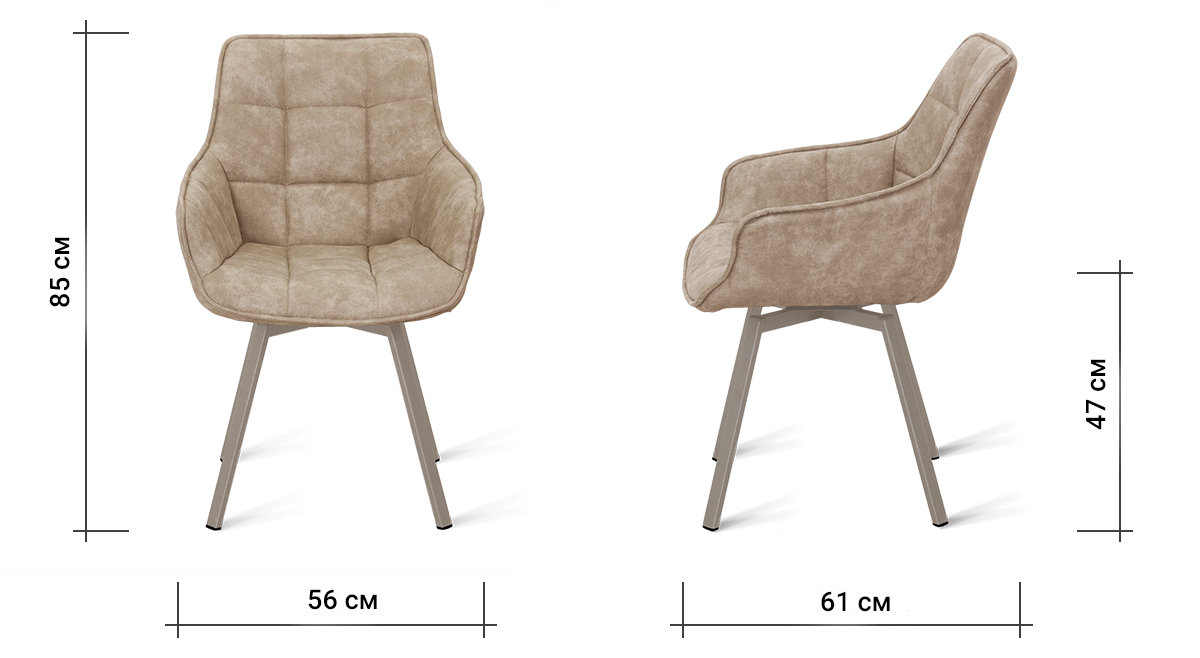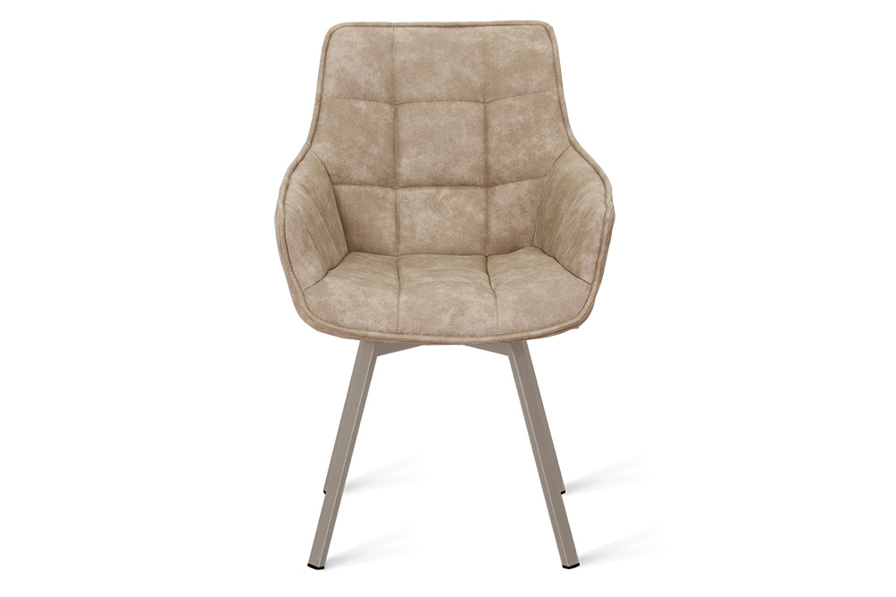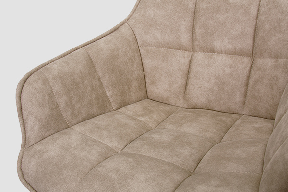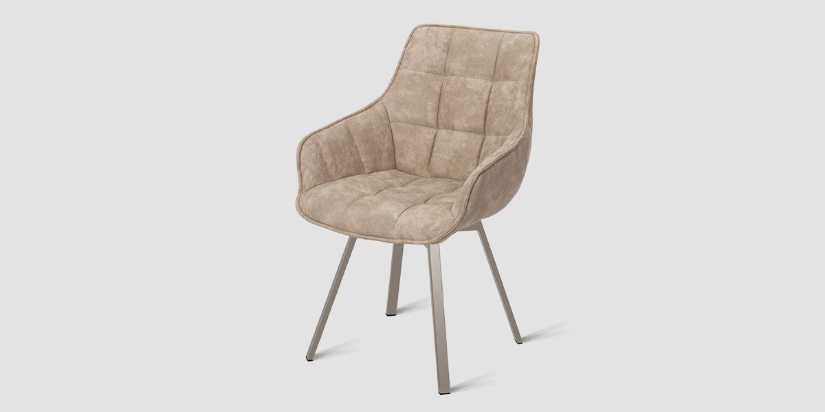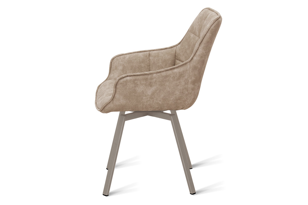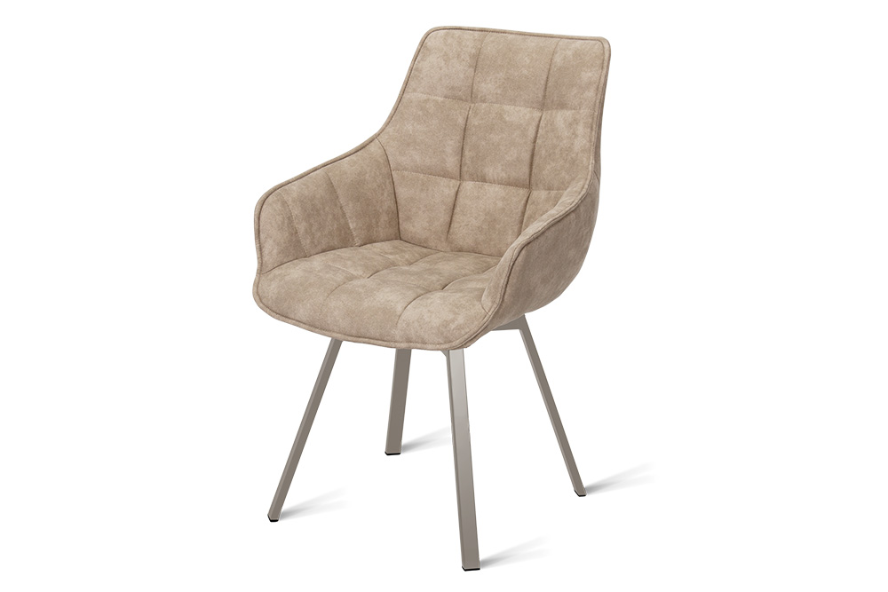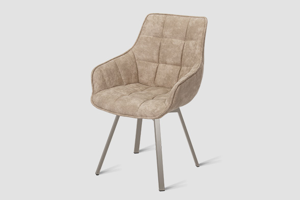 Дизайнерский стул с металлическим каркасом с поворотным сиденьем. Изготовлен в актуальной манере, обивка – экокожа цвета «латте». Ножки из металлического сплава в виде расходящихся лучей. Обивка оформлена в оригинальной стеганной манере. Особенности данной модели стула - это высокая и объемная спинка, большие подлокотники, форма, напоминающая уютное кресло на ножках. А также наличие поворотного механизма сиденья, который позволяет занять максимально комфортное расположение. Повороты выполняются непринужденно, без шума и больших усилий. Продуманная конструкция для максимального уюта позволяет расслабиться и отдохнуть, сидя на таком стуле.