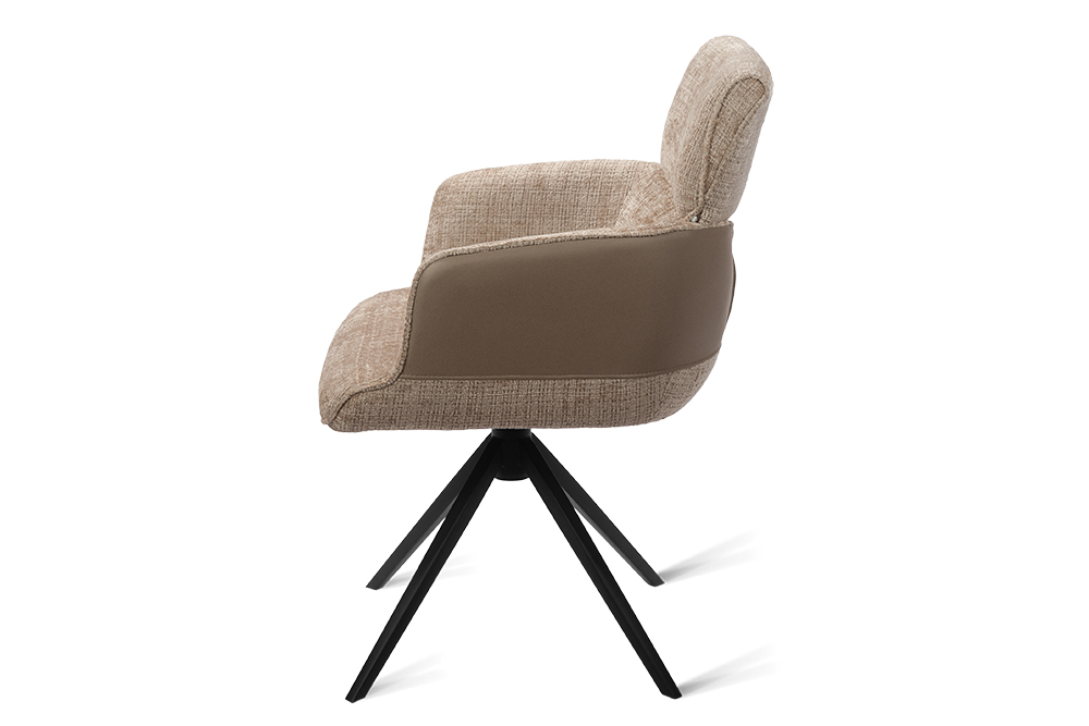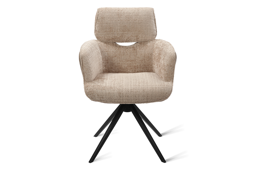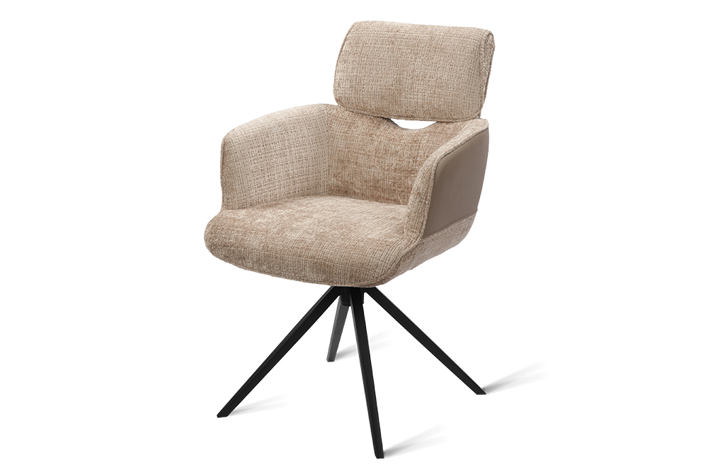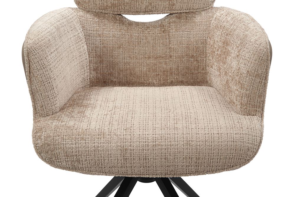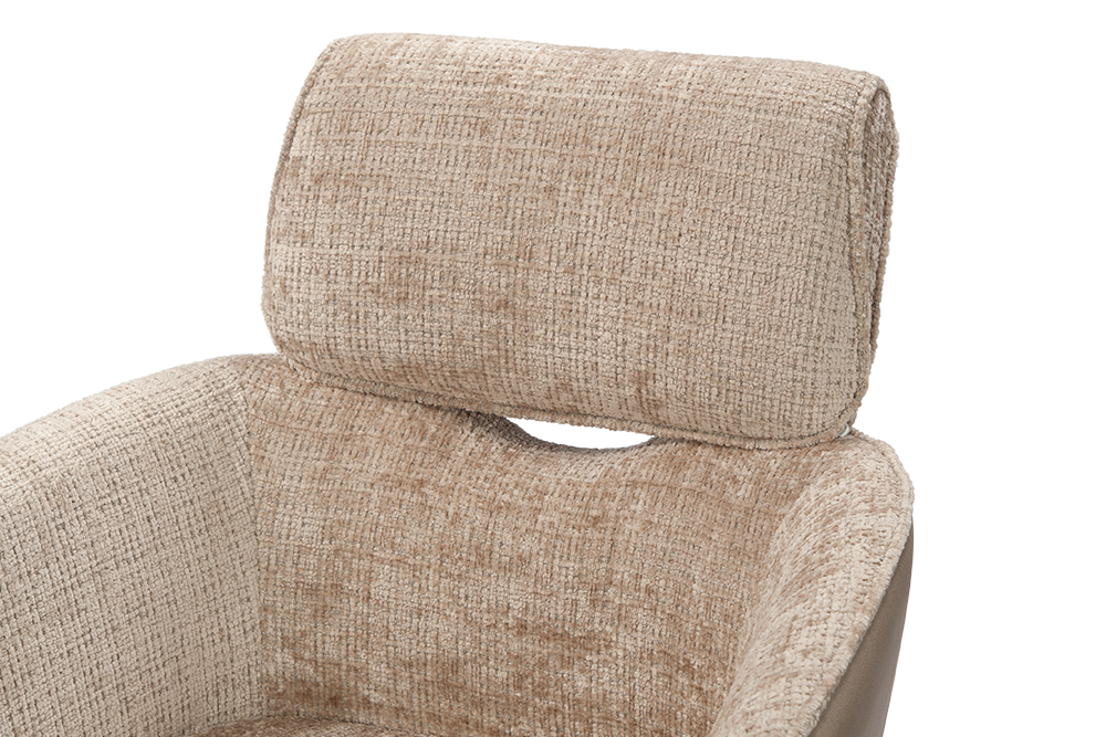 Стул-кресло B920 REUSS LATTE — комфорт и долговечность для любого уголка вашего дома. Удобная форма с мягким подголовником и возвратно-поворотным механизмом обеспечивает идеальную поддержку и плавное вращение на 180 градусов с автоматическим возвратом — легко повернитесь к собеседнику за столом, к зеркалу или к монитору. Стул-кресло всегда возвращается в исходное положение, сохраняя аккуратный и организованный вид вашей обстановки. Комбинированная обивка выполнена в гармоничной гамме: практичный шенилл цвета латте в контактных зонах выдерживает до 70 000 циклов истирания, подтверждая свою исключительную износостойкость, а мягкая экокожа темно-бежевого цвета с текстурой под замшу добавляют тактильный комфорт и облегчают уход. Лучеобразные ножки из чёрного металла придают конструкции лёгкость, устойчивость и завершают современный внешний вид. B920 REUSS LATTE органично дополнит обеденную зону, туалетный столик или рабочее место, сочетая в себе надёжность для ежедневного использования и сдержанную элегантность.