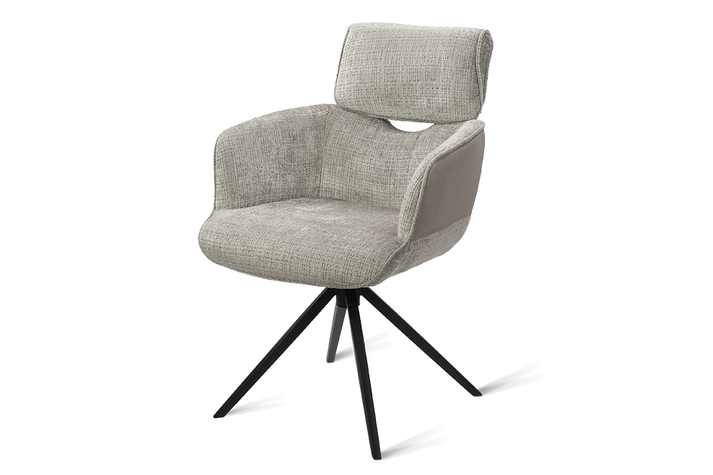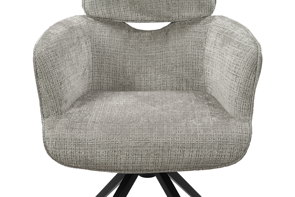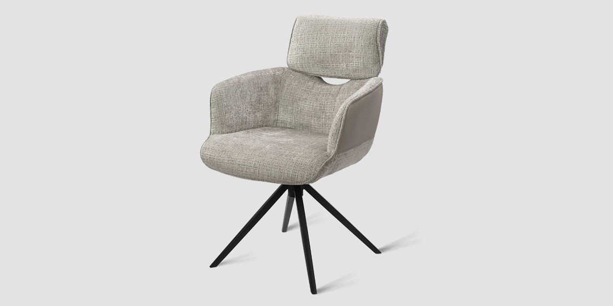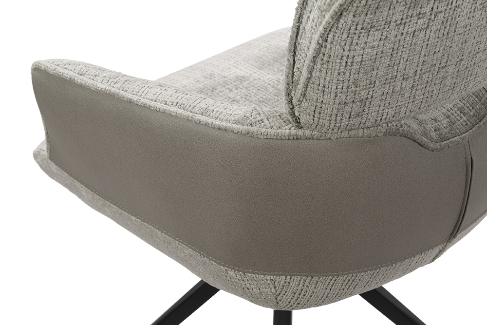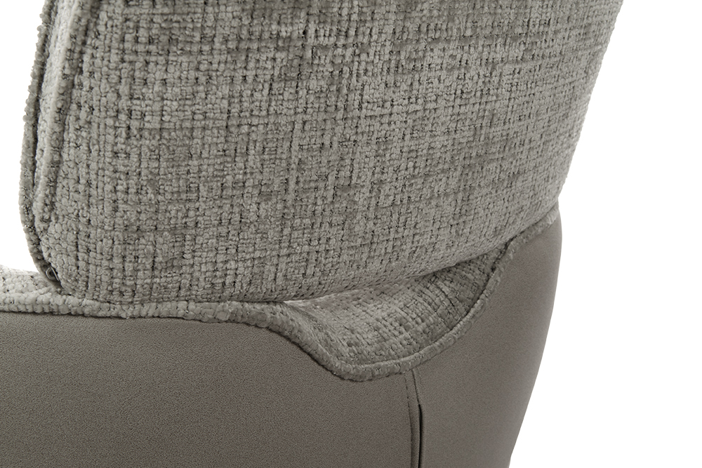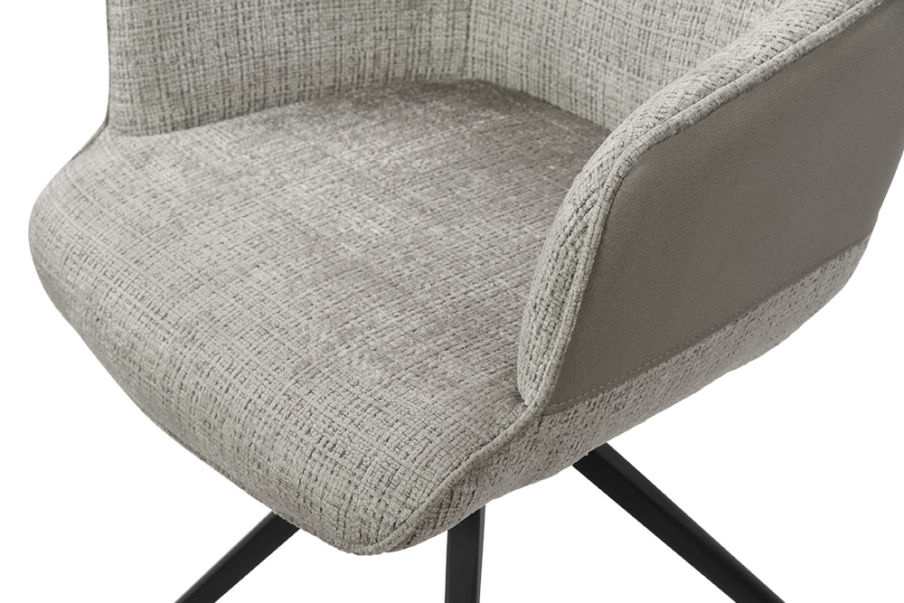 Стул-кресло B920 REUSS SILVER — комфорт и долговечность для любого уголка вашего дома. Удобная форма с мягким подголовником и возвратно-поворотным механизмом обеспечивает идеальную поддержку и плавное вращение на 180 градусов с автоматическим возвратом — легко повернитесь к собеседнику за столом, к зеркалу или к монитору. Стул-кресло всегда возвращается в исходное положение, сохраняя аккуратный и организованный вид вашей обстановки. Комбинированная обивка выполнена в гармоничной гамме: практичный шенилл серого цвета в контактных зонах выдерживает до 70 000 циклов истирания, подтверждая свою исключительную износостойкость, а мягкая экокожа темно-серого цвета с текстурой под замшу добавляют тактильный комфорт и облегчают уход. Лучеобразные ножки из чёрного металла придают конструкции лёгкость, устойчивость и завершают современный внешний вид. B920 REUSS SILVER органично дополнит обеденную зону, туалетный столик или рабочее место, сочетая в себе надёжность для ежедневного использования и сдержанную элегантность.