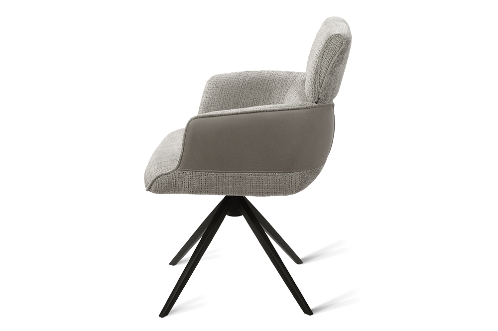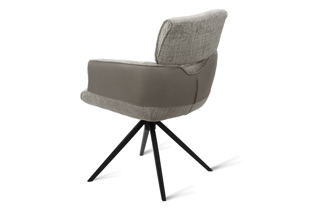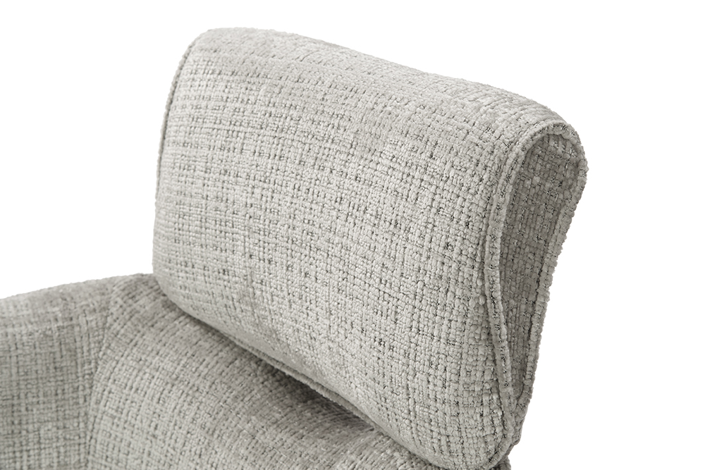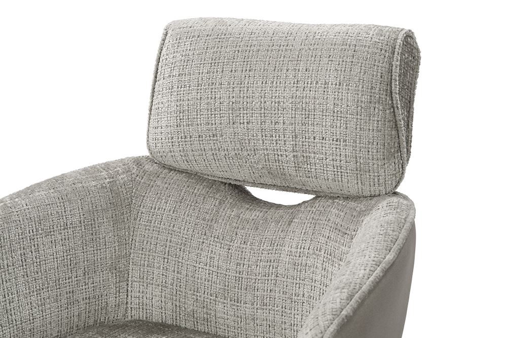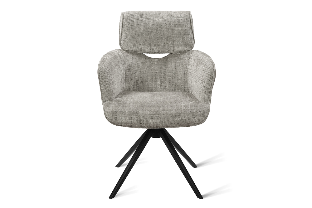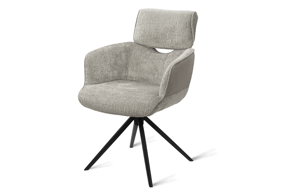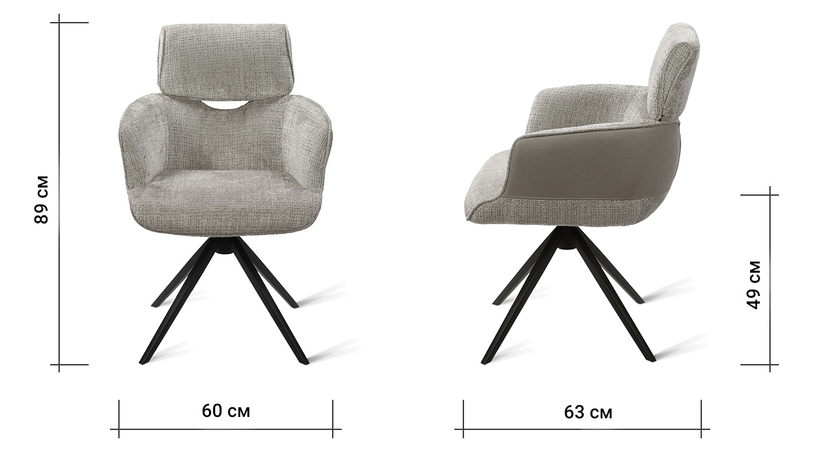 Стул-кресло B920 REUSS SILVER — комфорт и долговечность для любого уголка вашего дома. Удобная форма с мягким подголовником и возвратно-поворотным механизмом обеспечивает идеальную поддержку и плавное вращение на 180 градусов с автоматическим возвратом — легко повернитесь к собеседнику за столом, к зеркалу или к монитору. Стул-кресло всегда возвращается в исходное положение, сохраняя аккуратный и организованный вид вашей обстановки. Комбинированная обивка выполнена в гармоничной гамме: практичный шенилл серого цвета в контактных зонах выдерживает до 70 000 циклов истирания, подтверждая свою исключительную износостойкость, а мягкая экокожа темно-серого цвета с текстурой под замшу добавляют тактильный комфорт и облегчают уход. Лучеобразные ножки из чёрного металла придают конструкции лёгкость, устойчивость и завершают современный внешний вид. B920 REUSS SILVER органично дополнит обеденную зону, туалетный столик или рабочее место, сочетая в себе надёжность для ежедневного использования и сдержанную элегантность.