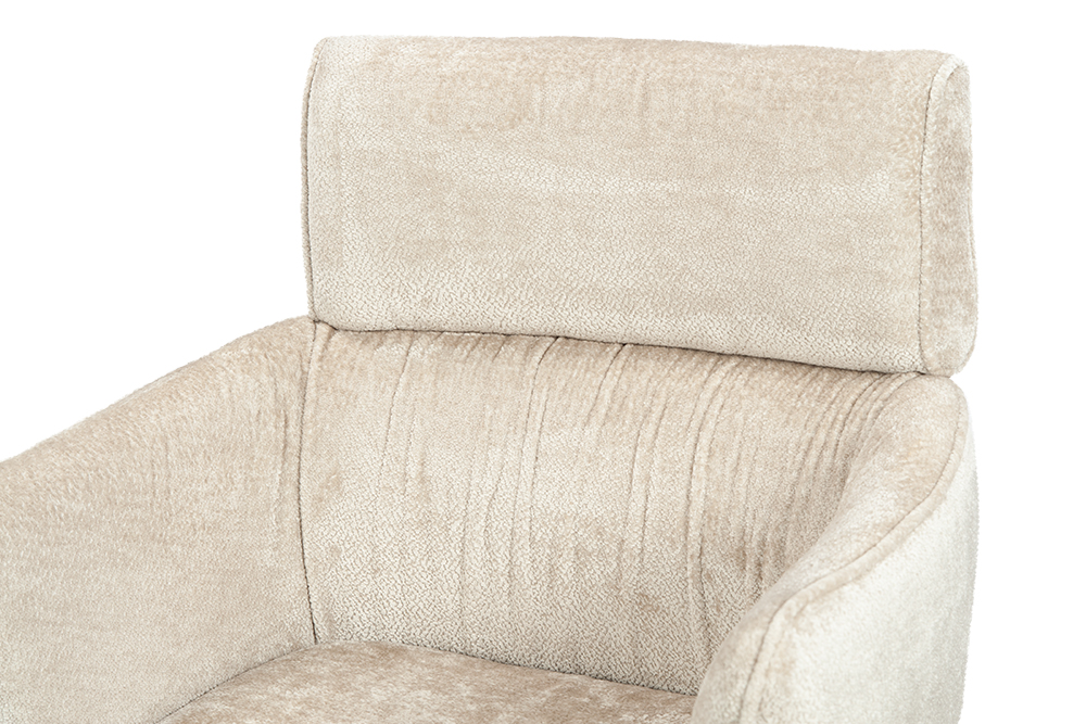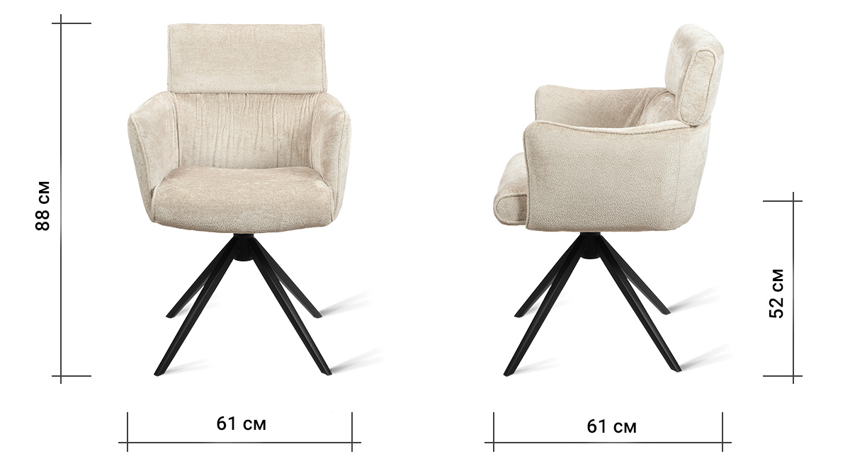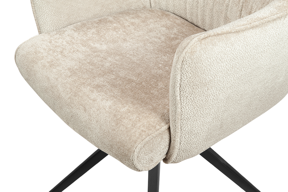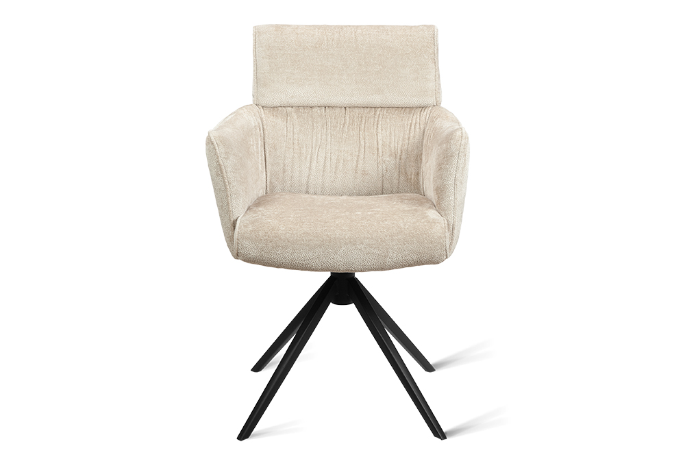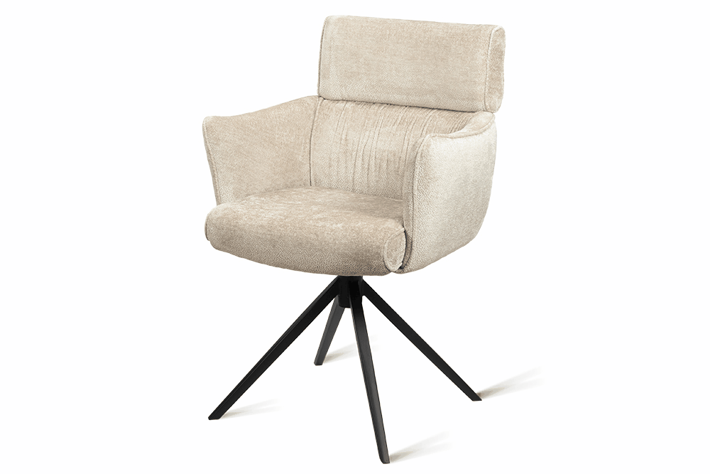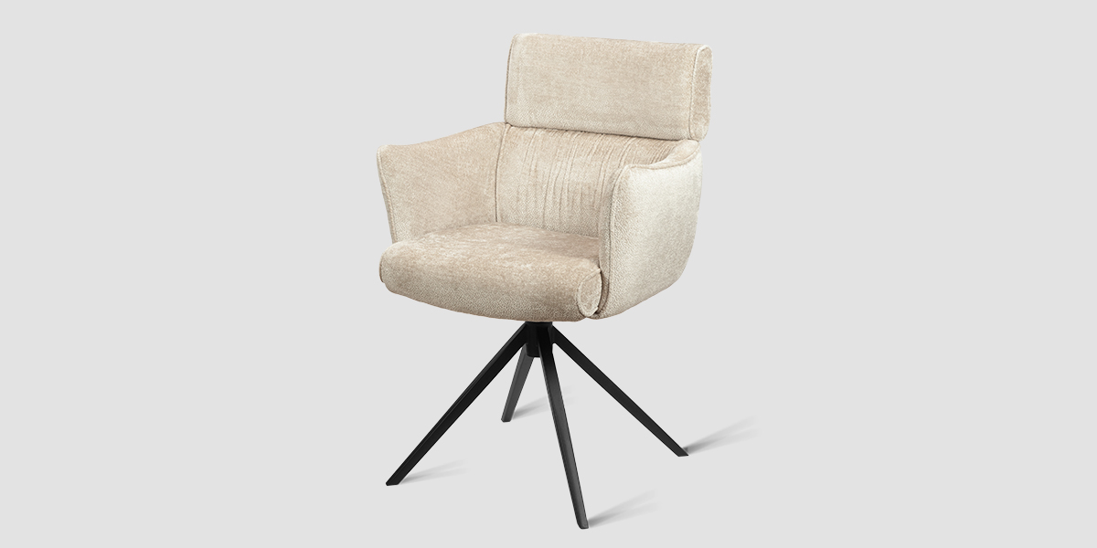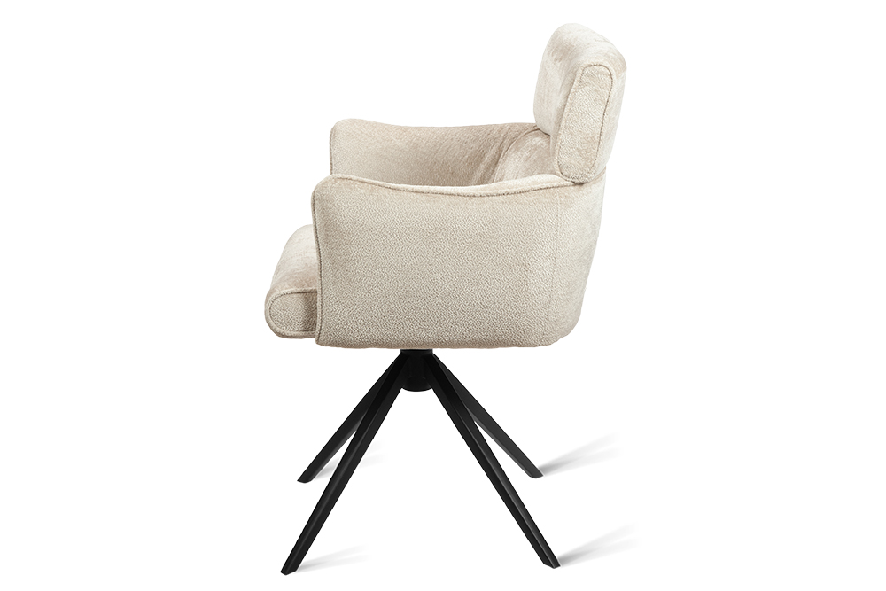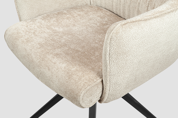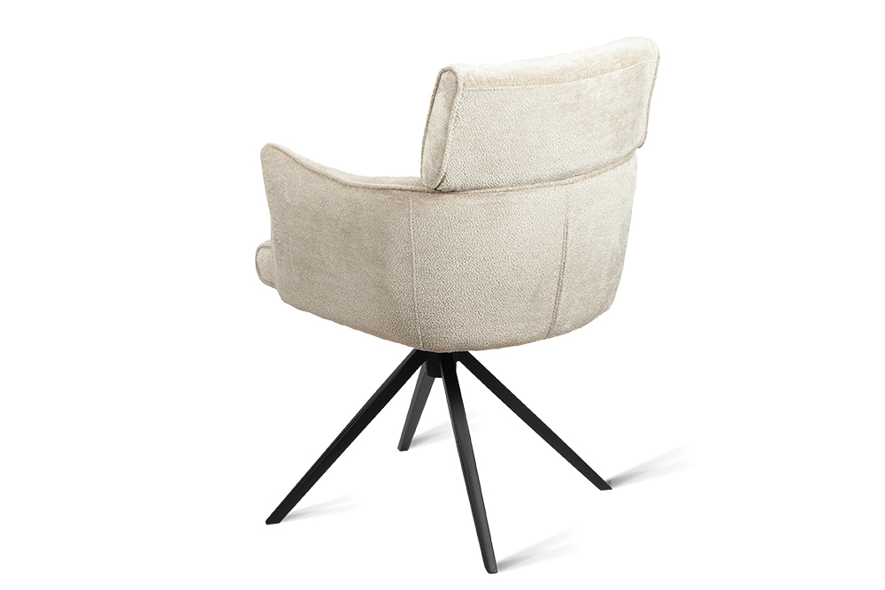 Стул-кресло B930 NEO CAP — строгий, элегантный и практичный элемент для современного интерьера. Его прямоугольная форма с выразительными линиями и контрастными кантами подчеркивает сдержанный дизайн, подходящий для рабочего кабинета, столовой или зоны у туалетного столика. Возвратно-поворотный механизм обеспечивает плавное вращение на 180 градусов и автоматически возвращает стул в исходное положение, сохраняя порядок в пространстве. Обивка из плотного бархатного шенилла цвета капучино, стойкость которого подтверждена 100 000 циклов истирания по Мартиндейлу, отличается исключительной долговечностью, приятной текстурой и простотой в уходе. Лучеобразные ножки из черного металла придают модели лёгкую визуальную геометрию и обеспечивают надёжную устойчивость. Этот стул станет надёжным и стильным компаньоном на долгие годы, органично вписываясь в различные сценарии вашей жизни.