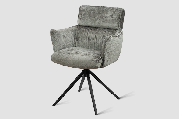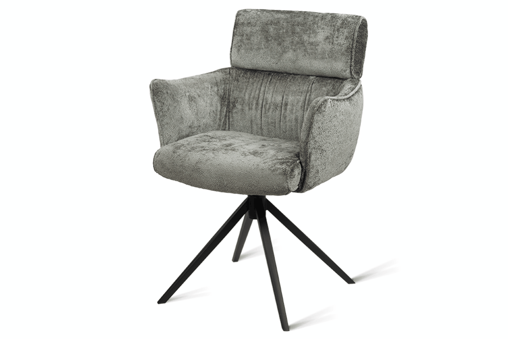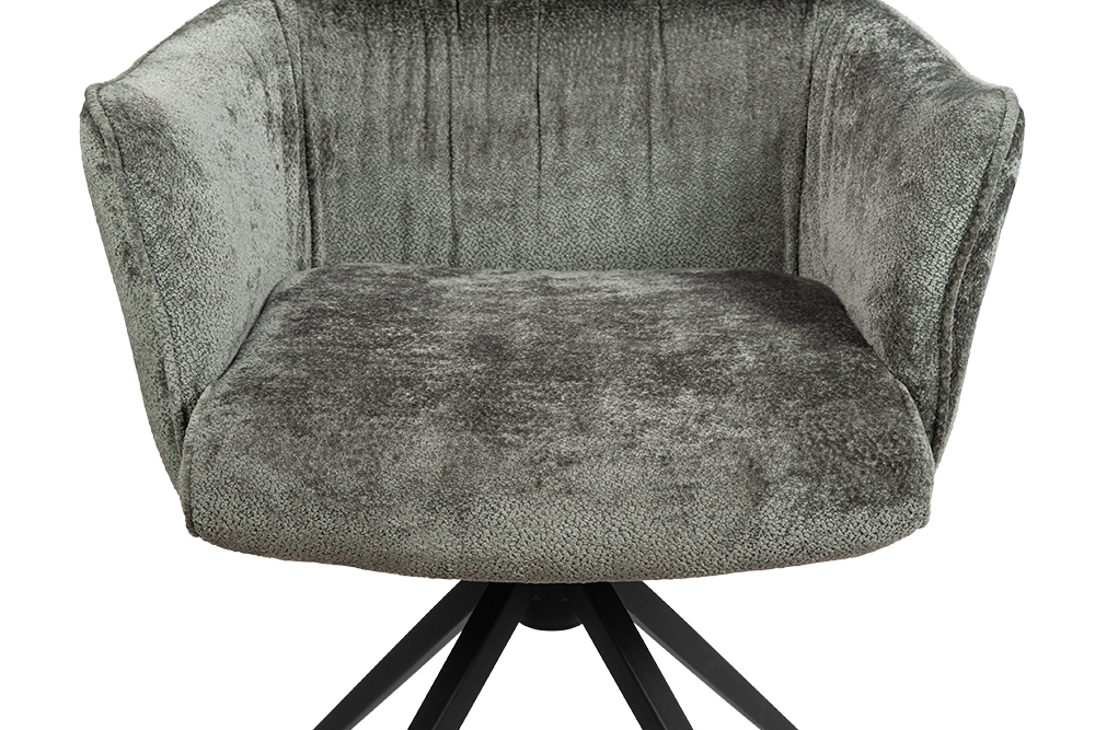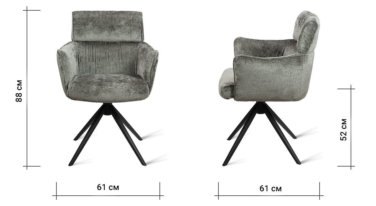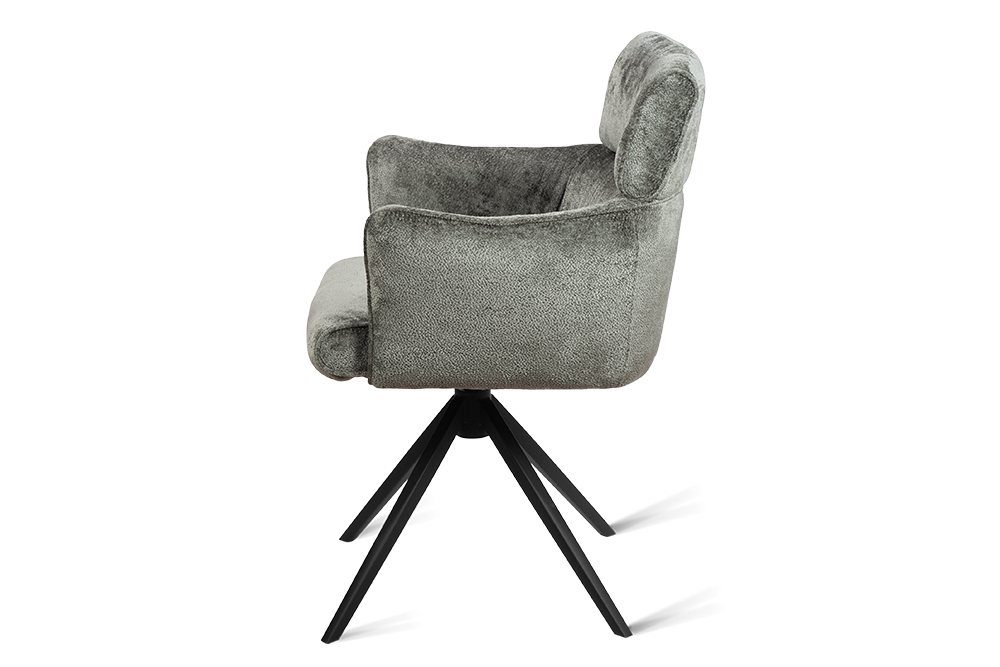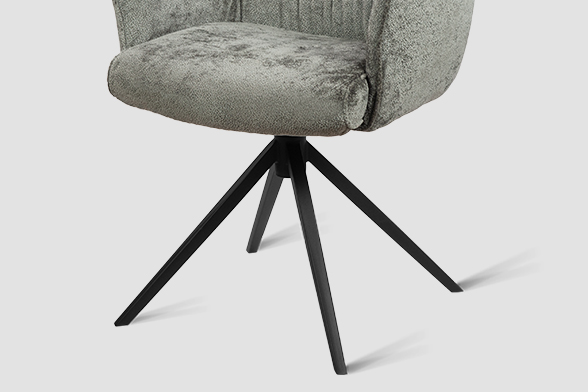 Стул-кресло B930 NEO DARK GREY — строгий, элегантный и практичный элемент для современного интерьера. Его прямоугольная форма с выразительными линиями и контрастными кантами подчеркивает сдержанный дизайн, подходящий для рабочего кабинета, столовой или зоны у туалетного столика. Возвратно-поворотный механизм обеспечивает плавное вращение на 180 градусов и автоматически возвращает стул в исходное положение, сохраняя порядок в пространстве. Обивка из плотного бархатного шенилла темно-серого цвета, стойкость которого подтверждена 100 000 циклов истирания по Мартиндейлу, отличается исключительной долговечностью, приятной текстурой и простотой в уходе. Лучеобразные ножки из черного металла придают модели лёгкую визуальную геометрию и обеспечивают надёжную устойчивость. Этот стул станет надёжным и стильным компаньоном на долгие годы, органично вписываясь в различные сценарии вашей жизни.