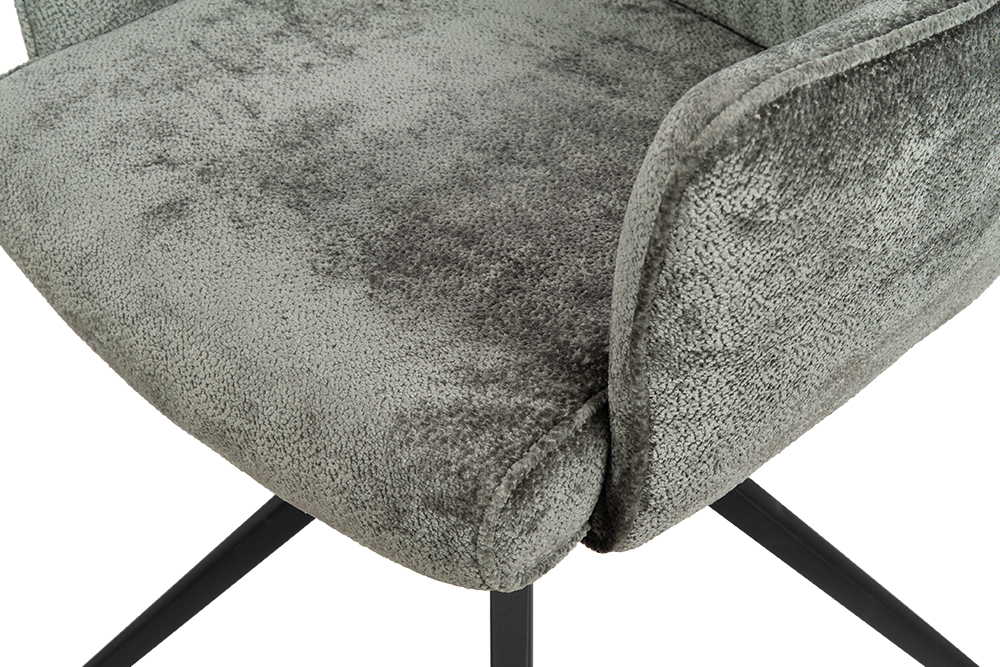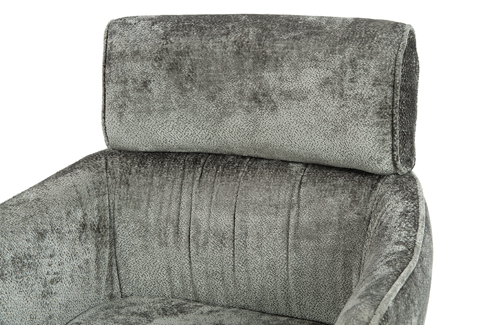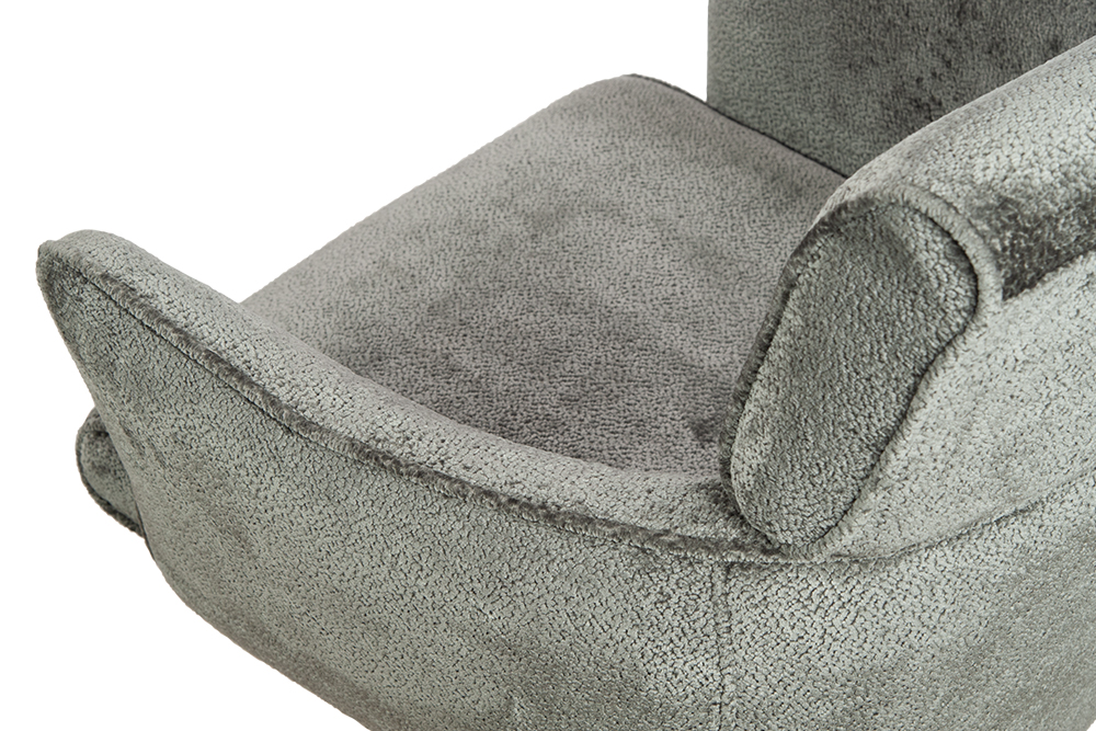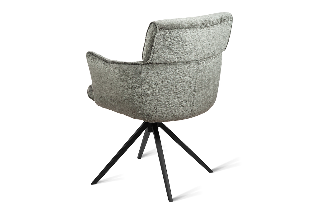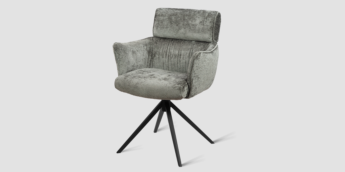 Стул-кресло B930 NEO DARK GREY — строгий, элегантный и практичный элемент для современного интерьера. Его прямоугольная форма с выразительными линиями и контрастными кантами подчеркивает сдержанный дизайн, подходящий для рабочего кабинета, столовой или зоны у туалетного столика. Возвратно-поворотный механизм обеспечивает плавное вращение на 180 градусов и автоматически возвращает стул в исходное положение, сохраняя порядок в пространстве. Обивка из плотного бархатного шенилла темно-серого цвета, стойкость которого подтверждена 100 000 циклов истирания по Мартиндейлу, отличается исключительной долговечностью, приятной текстурой и простотой в уходе. Лучеобразные ножки из черного металла придают модели лёгкую визуальную геометрию и обеспечивают надёжную устойчивость. Этот стул станет надёжным и стильным компаньоном на долгие годы, органично вписываясь в различные сценарии вашей жизни.