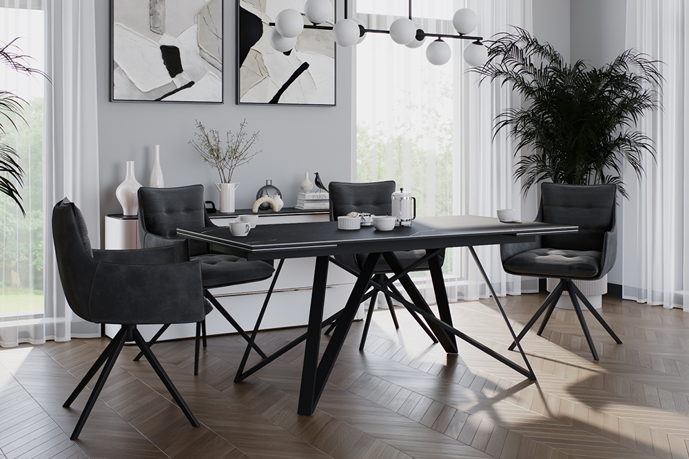 Стул-кресло B960 AST GRAPHITE — это сочетание комфорта и современного стиля. Мягкие подушечки из велюра графитового цвета с вельветовой фактурой создают приятные тактильные ощущения и привлекают внимание своим выразительным дизайном. Спинка и подлокотники, выполненные из темно-серой экокожи с замшевой текстурой, добавляют изделию утонченности и изысканности. Обтекаемые формы, широкие подлокотники и удобная посадка обеспечивают комфорт даже при длительном использовании, а металлические ножки с лучевидным дизайном в черном цвете придают конструкции легкость и устойчивость. Возвратно-поворотный механизм кресла позволяет плавно вращаться и автоматически возвращает сиденье в исходное положение, добавляя функциональности и поддерживая гармоничный внешний вид интерьера. Идеальный выбор для дома, офиса или ресторана — стильное и практичное решение для вашего пространства!