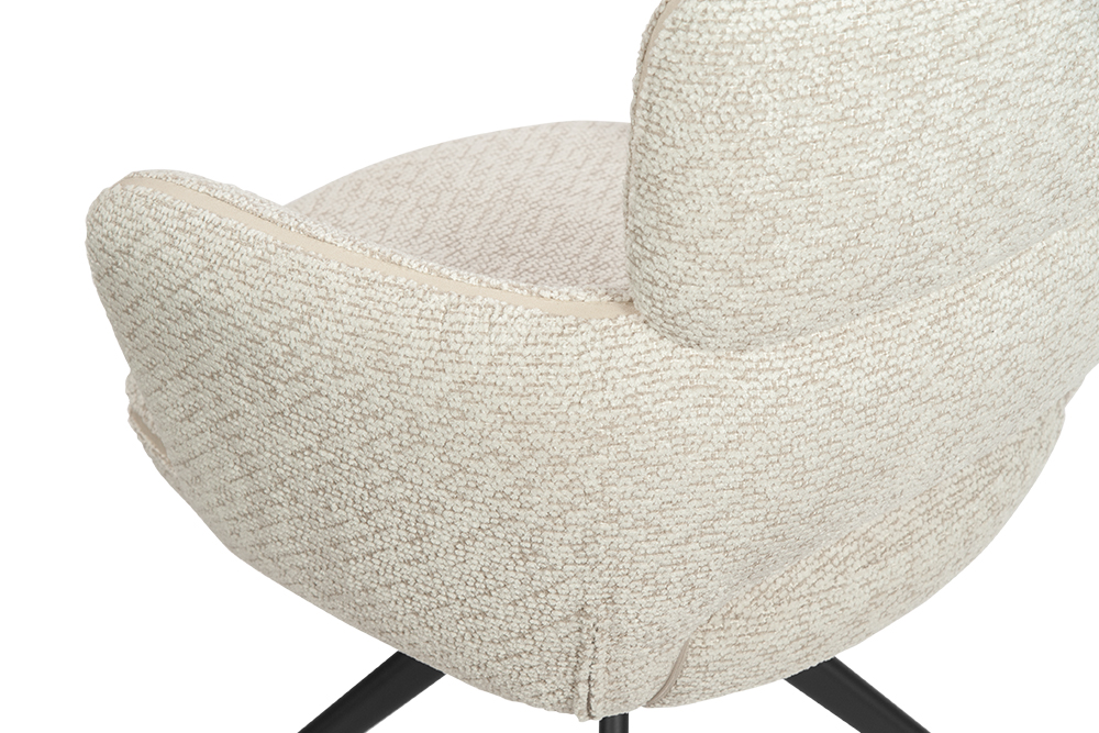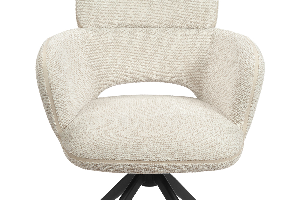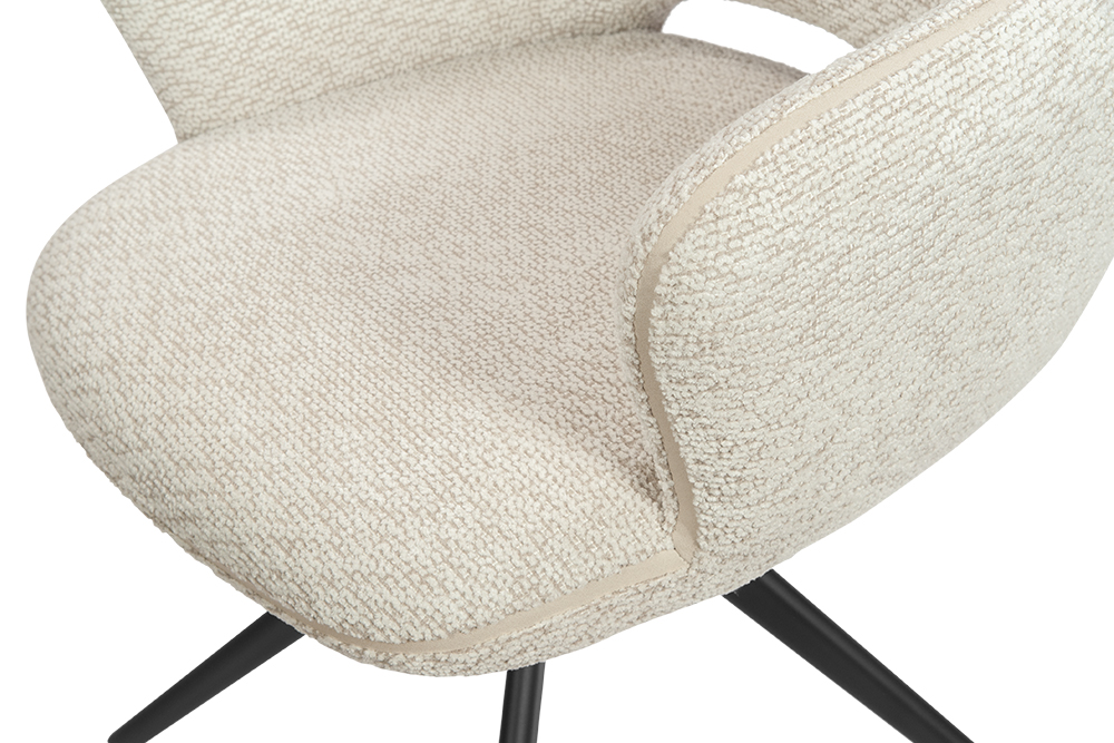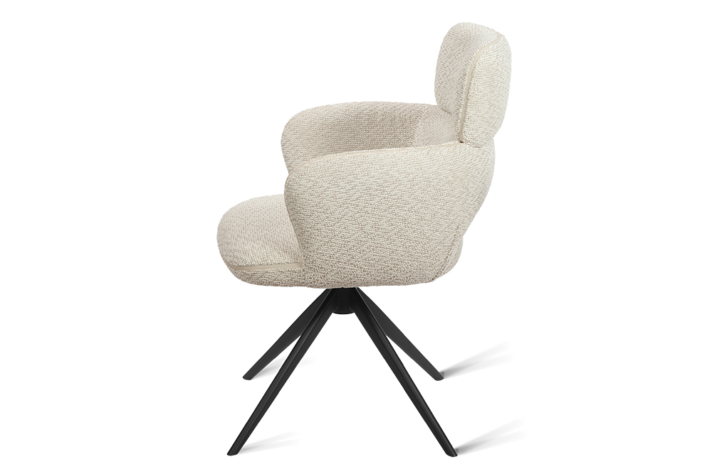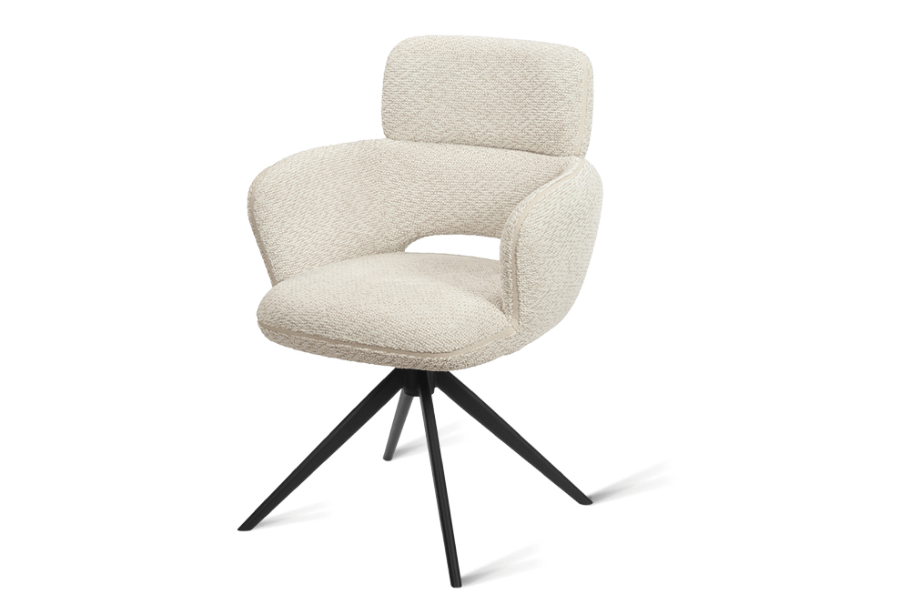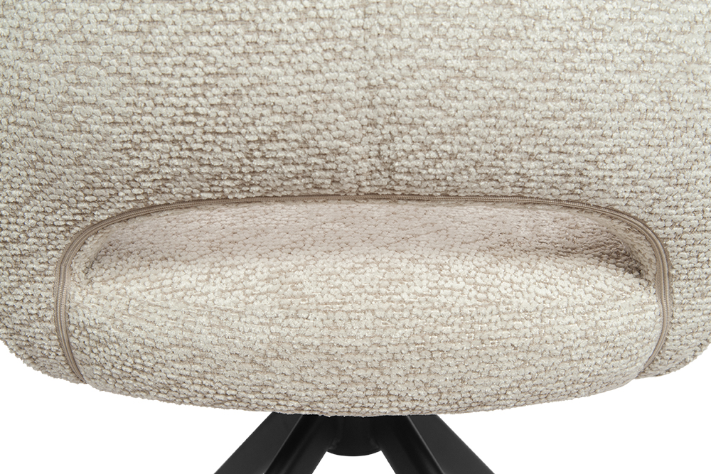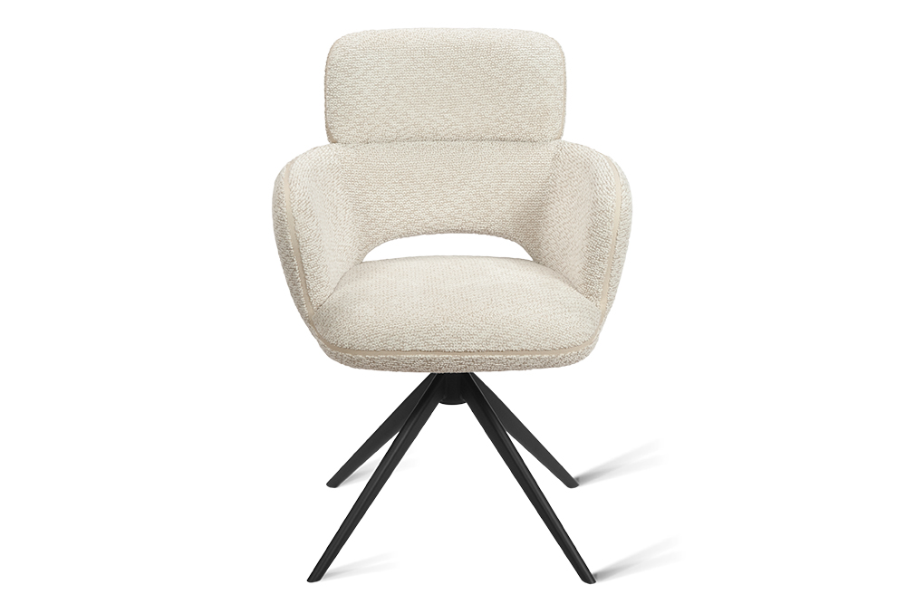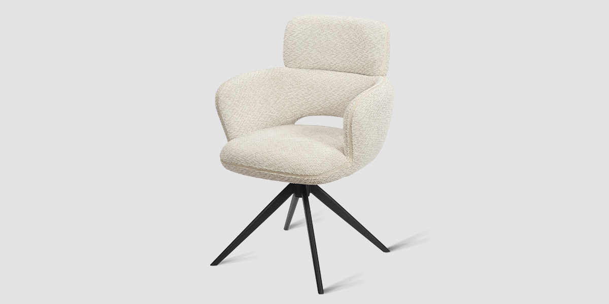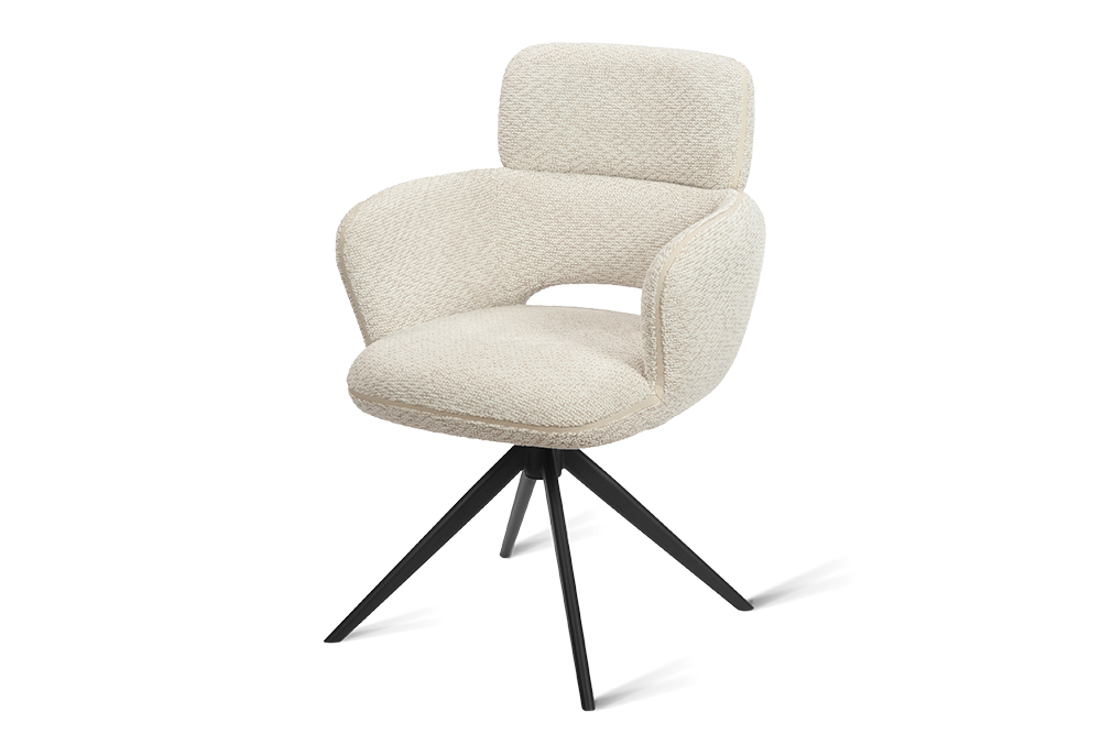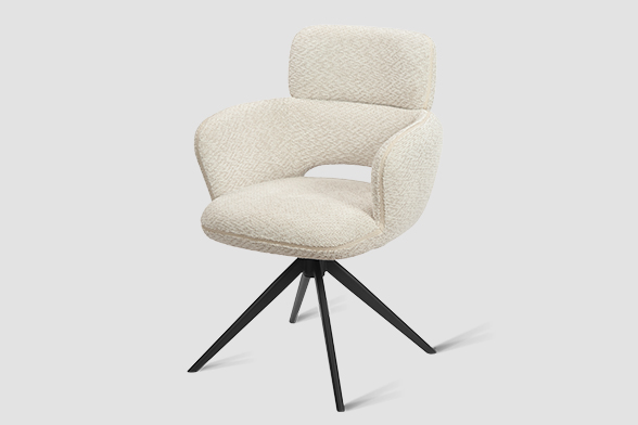 Стул-кресло B980 ESSO CAP — воплощение эстетики и продуманного комфорта. Его округлая, мягкая форма с элегантной декоративной строчкой создаёт выразительный силуэт, подходящий для современных интерьеров. Возвратно-поворотный механизм обеспечивает плавное вращение на 180 градусов и автоматически возвращает стул в исходное положение, поддерживая аккуратность и порядок в пространстве. Обивка сочетает практичность и стиль: основа из шенилла светло-бежевого цвета отличается повышенной износостойкостью и долговечностью, а контрастная строчка из мягкой экокожи подчёркивает безупречные линии кресла, добавляя тактильное благородство. Лучеобразные ножки из чёрного металла придают конструкции лёгкую устойчивость и завершают целостный образ. B980 ESSO CAP универсален в использовании: он гармонично дополнит обеденную зону, станет удобным спутником у туалетного столика или органично впишется в рабочее место у письменного стола. Этот стул — выбор для тех, кто ценит сбалансированный дизайн, надёжность материалов и комфорт, который остаётся с вами на долгие годы.