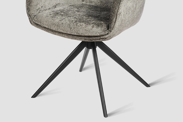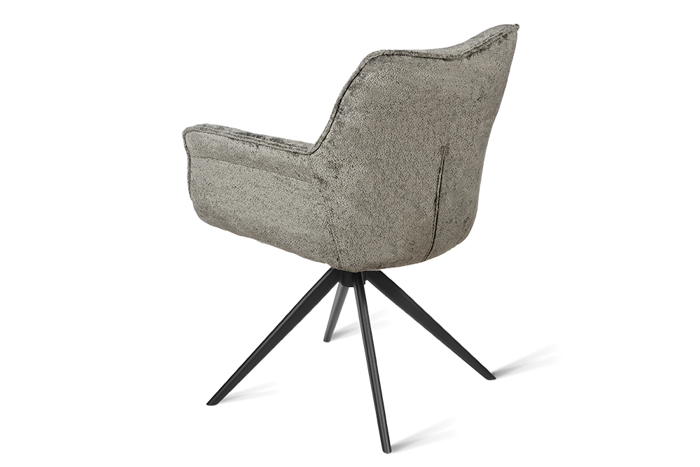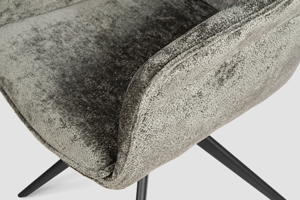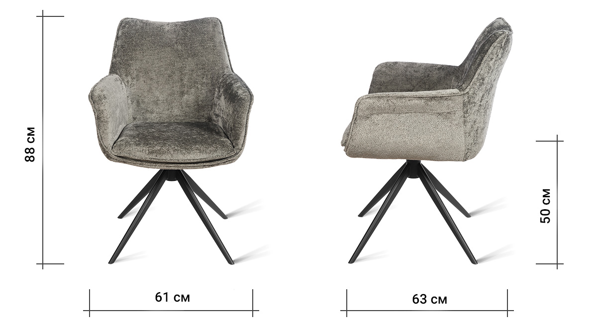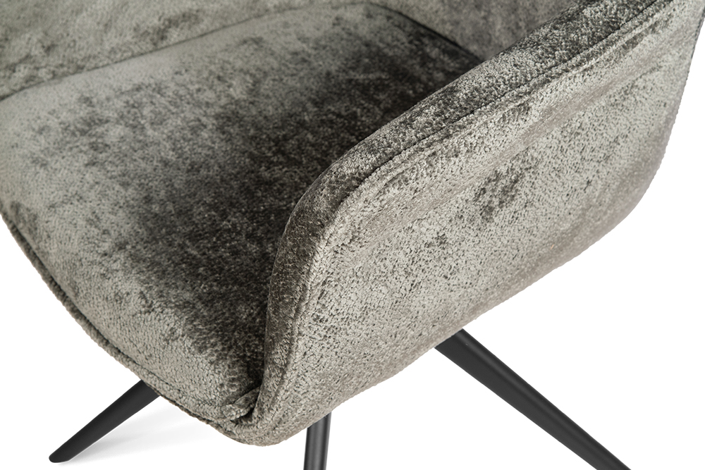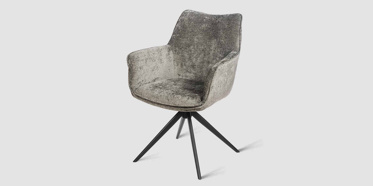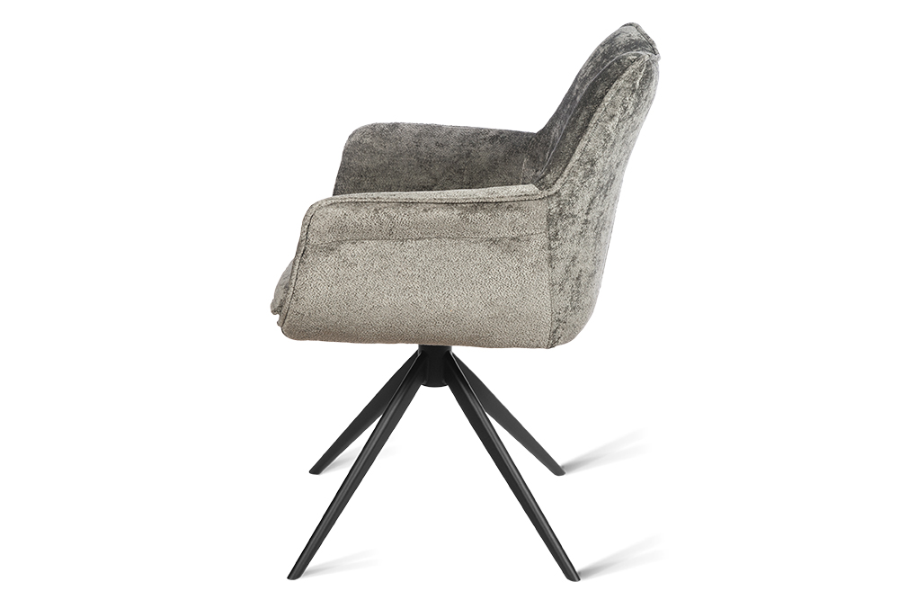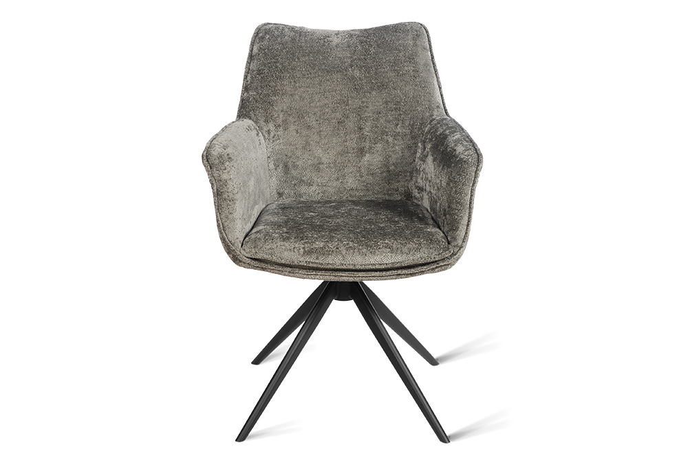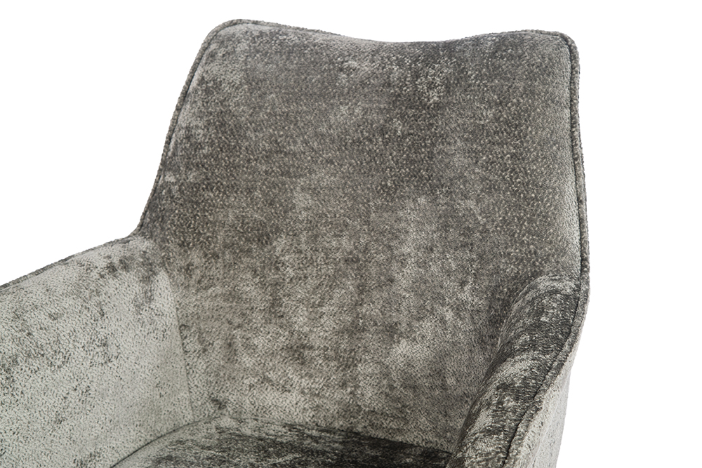 Стул-кресло B990 NEO DARK GREY — идеальное сочетание стиля и функциональности для современного дома. Его возвратно-поворотный механизм обеспечивает плавное вращение и автоматически возвращает стул в исходное положение, сохраняя аккуратность и порядок вокруг. Модель выполнена из практичного плюшевого шенилла темно-серого цвета, чья прочность подтверждена тестом в 100 000 циклов истирания по Мартиндейлу. Это гарантирует, что обивка годами сохраняет свой вид, оставаясь мягкой, устойчивой к загрязнениям и простой в уходе. Элегантный кант подчеркивает строгие линии кресла, а лучеобразные ножки из черного металла добавляют лёгкости и устойчивости. B990 NEO DARK GREY универсален: он станет стильным акцентом у обеденного стола, удобным помощником у туалетного столика или эргономичным решением для рабочей зоны.