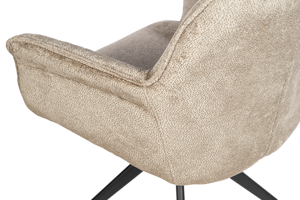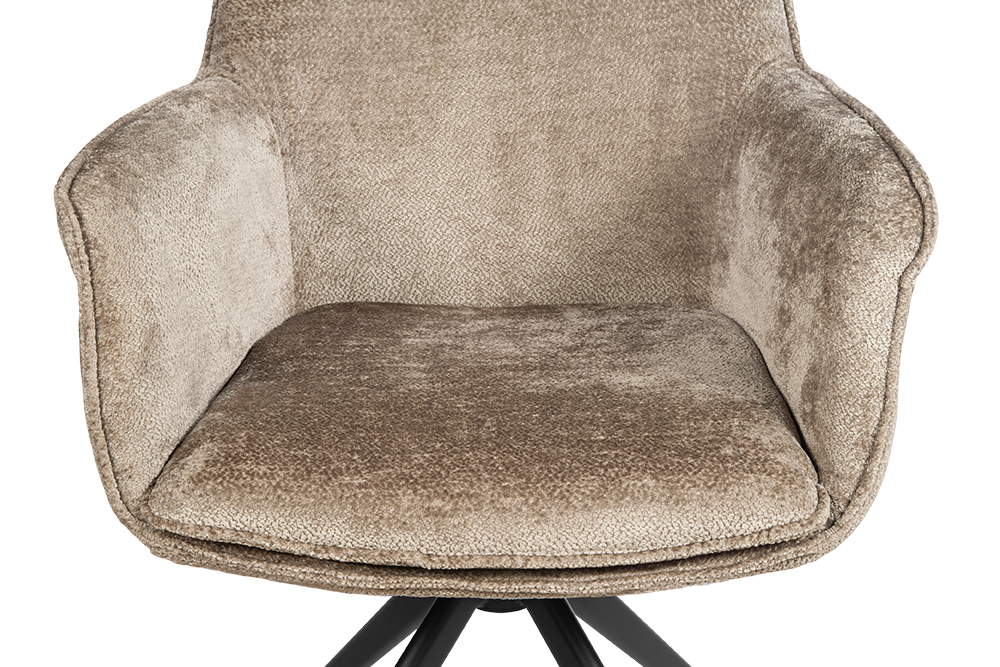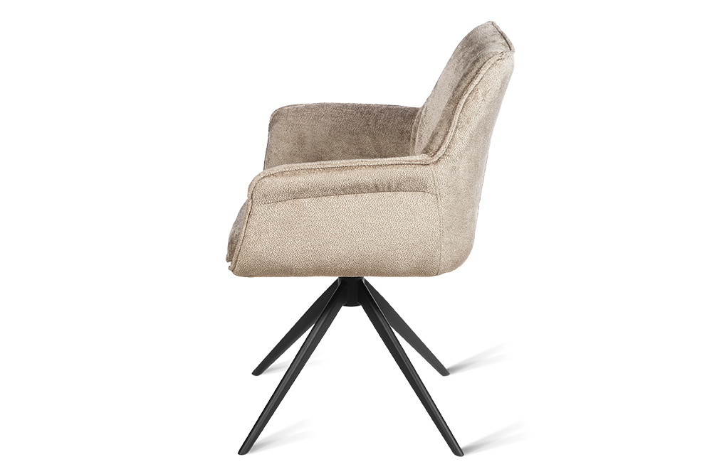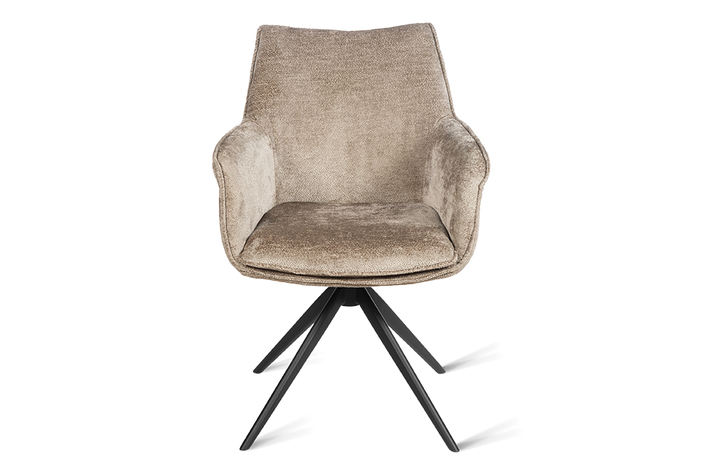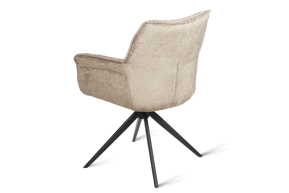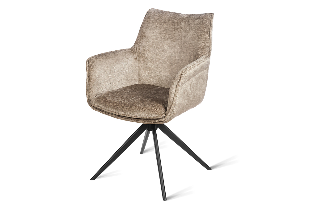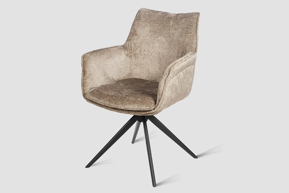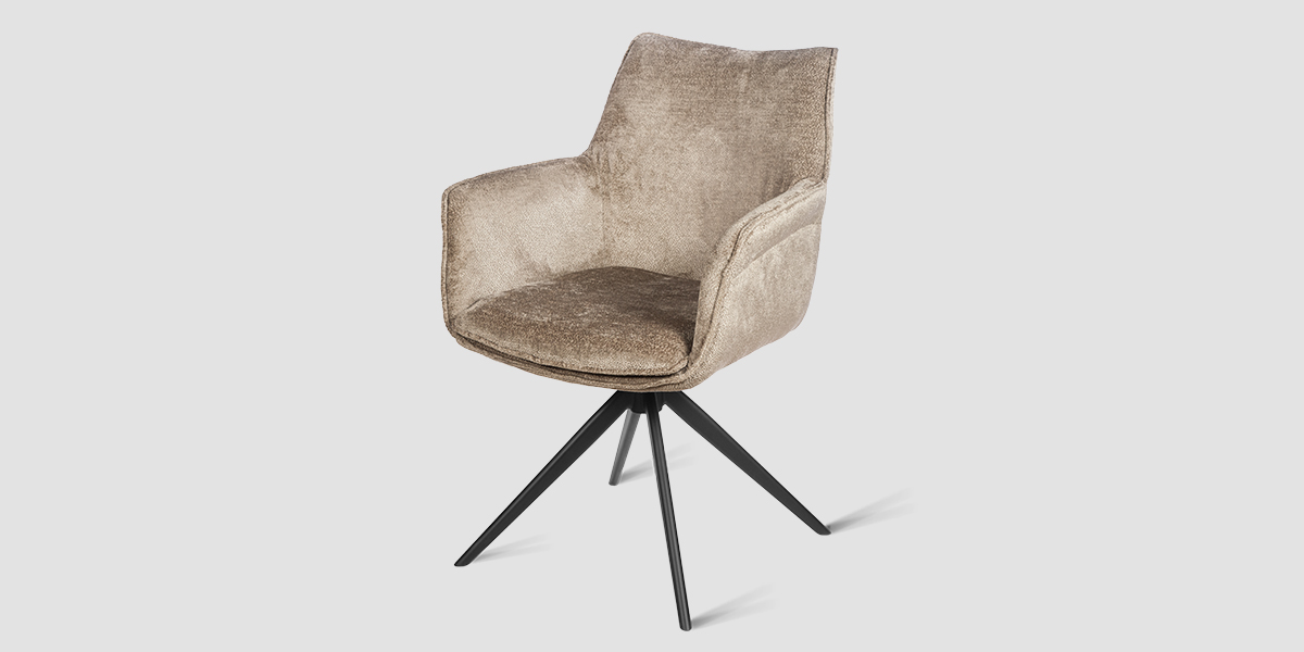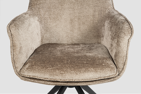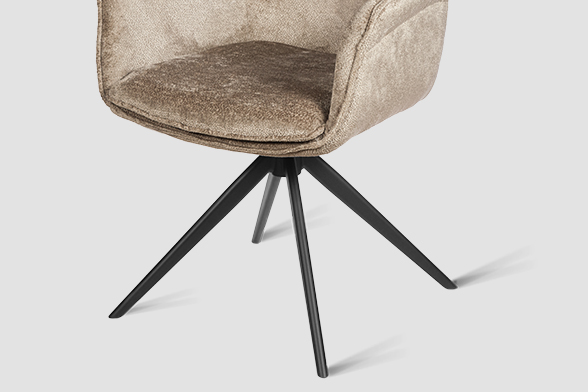 Стул-кресло B990 NEO MOKKA — идеальное сочетание стиля и функциональности для современного дома. Его возвратно-поворотный механизм обеспечивает плавное вращение и автоматически возвращает стул в исходное положение, сохраняя аккуратность и порядок вокруг. Модель выполнена из практичного плюшевого шенилла темно-цвета мокка, чья прочность подтверждена тестом в 100 000 циклов истирания по Мартиндейлу. Это гарантирует, что обивка годами сохраняет свой вид, оставаясь мягкой, устойчивой к загрязнениям и простой в уходе. Элегантный кант подчеркивает строгие линии кресла, а лучеобразные ножки из черного металла добавляют лёгкости и устойчивости. B990 NEO MOKKA универсален: он станет стильным акцентом у обеденного стола, удобным помощником у туалетного столика или эргономичным решением для рабочей зоны.